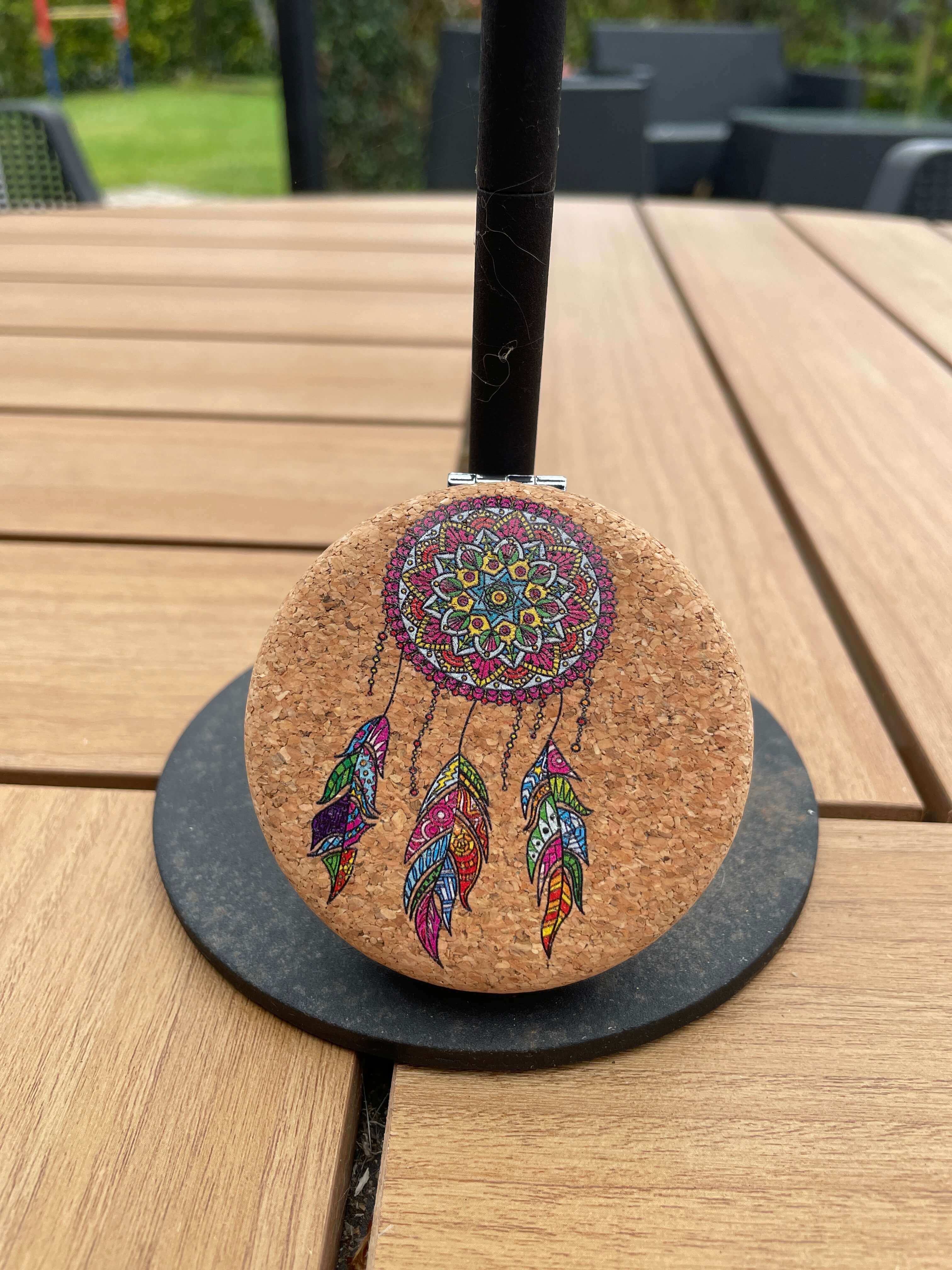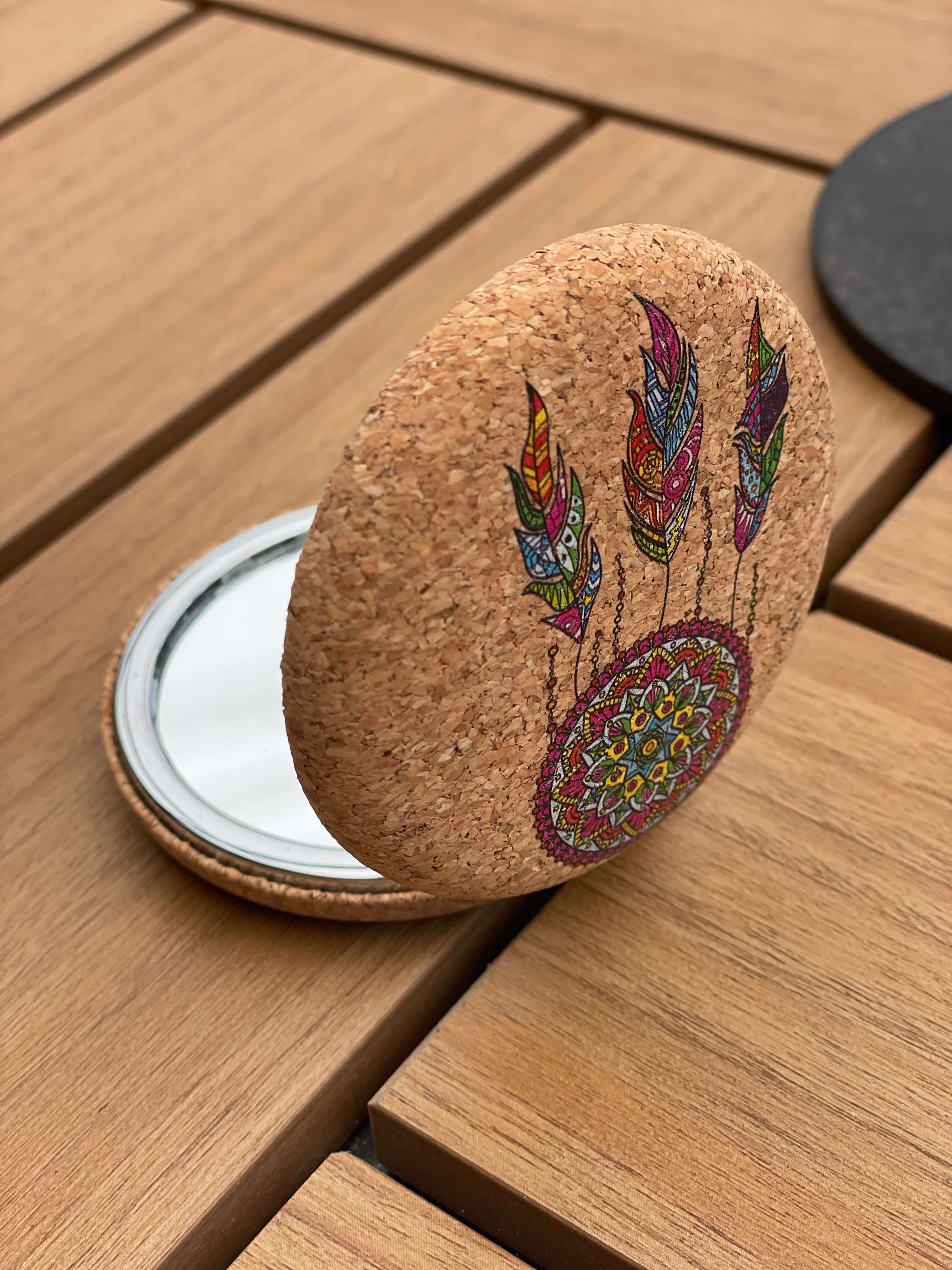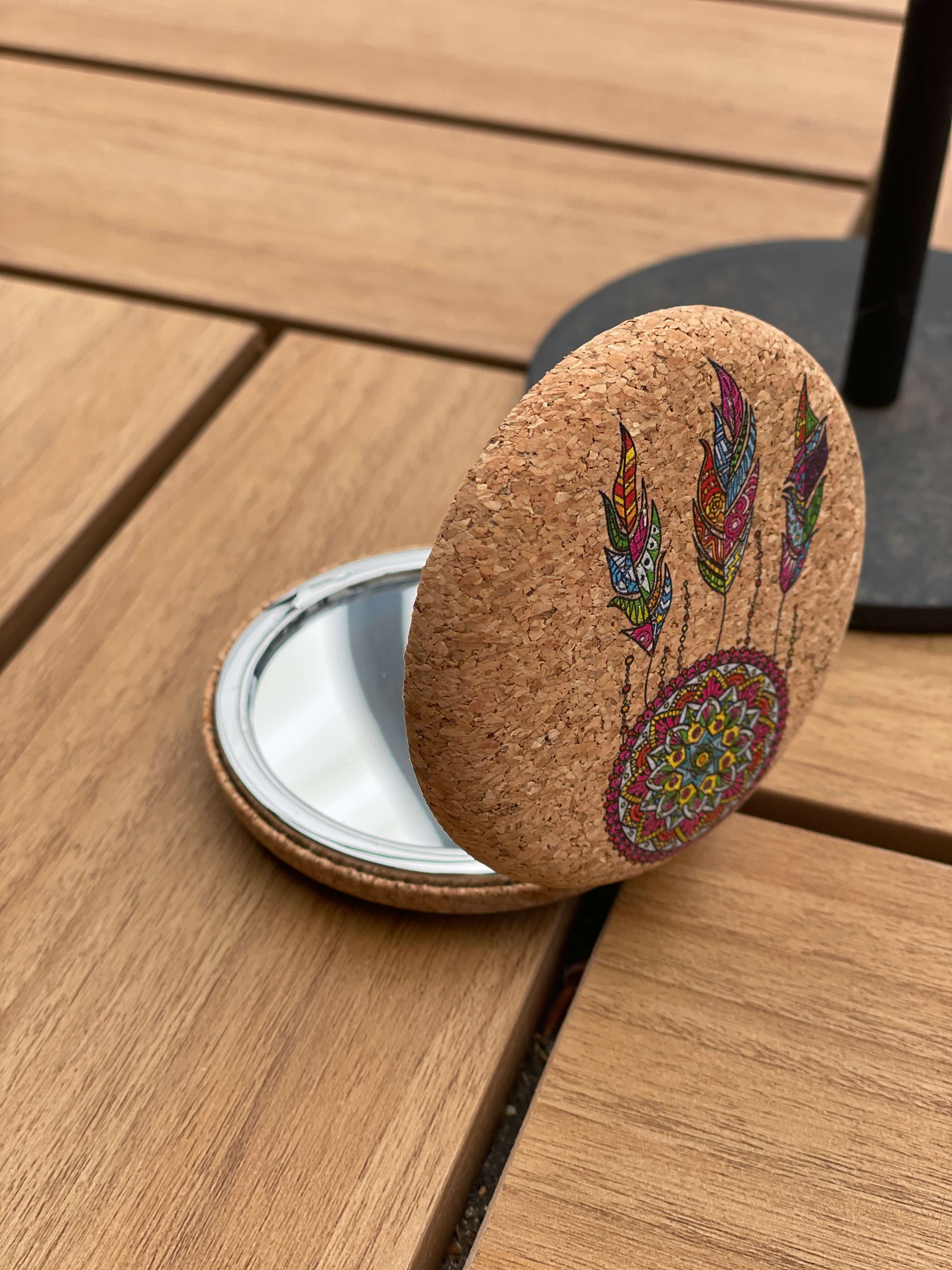Håndspejl i kork med drømmefanger – funktionalitet med et kærligt touch