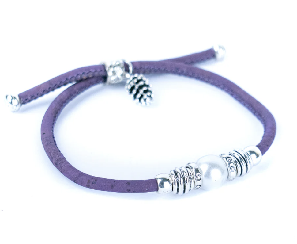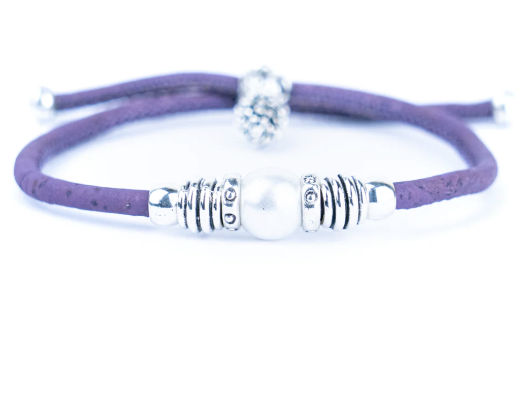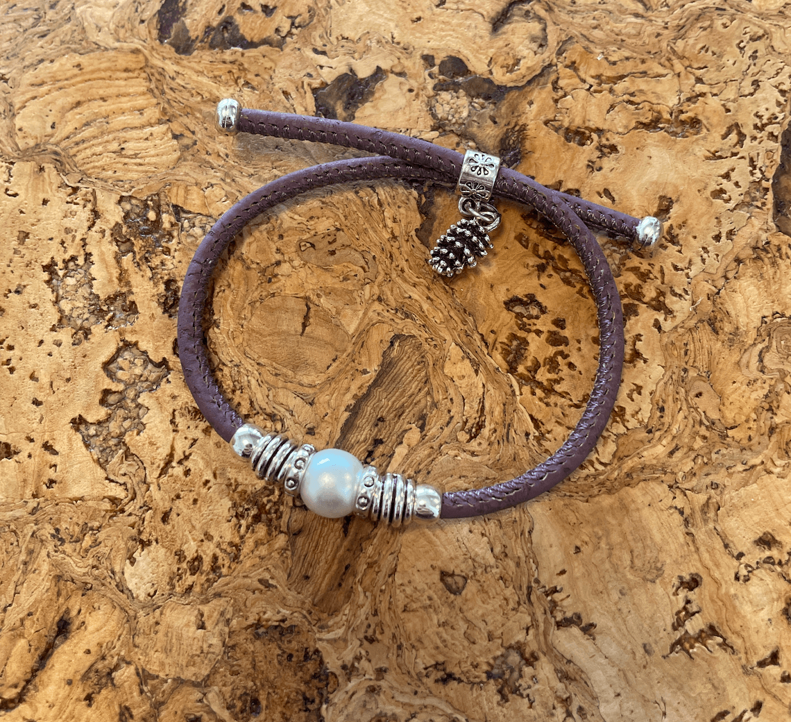 Armbånd i lilla kork med perle – håndlavet i Portugal