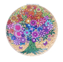 Håndspejl i kork med mønster af et træ med blomster – funktionalitet med et kærligt touch