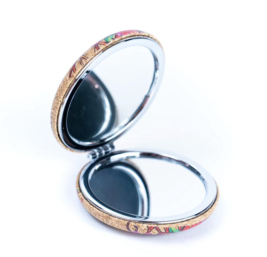 Det lille og lette design gør dette spejl perfekt at have med i tasken, så du altid kan tjekke makeup’en eller rette håret i løbet af dagen. Når det ikke er i brug, pynter det smukt på badeværelset eller sminkebordet med sit naturlige korklook.