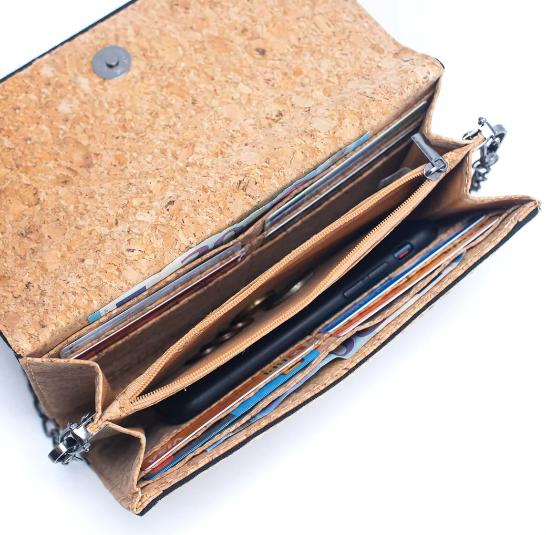 Her får du en mobiltaske, der er lige så praktisk, som den er nem at holde af. Lavet i smukt kork med sort geometrisk mønster, har den et let og naturligt udtryk, der passer til alle slags dage – og alle slags mennesker.