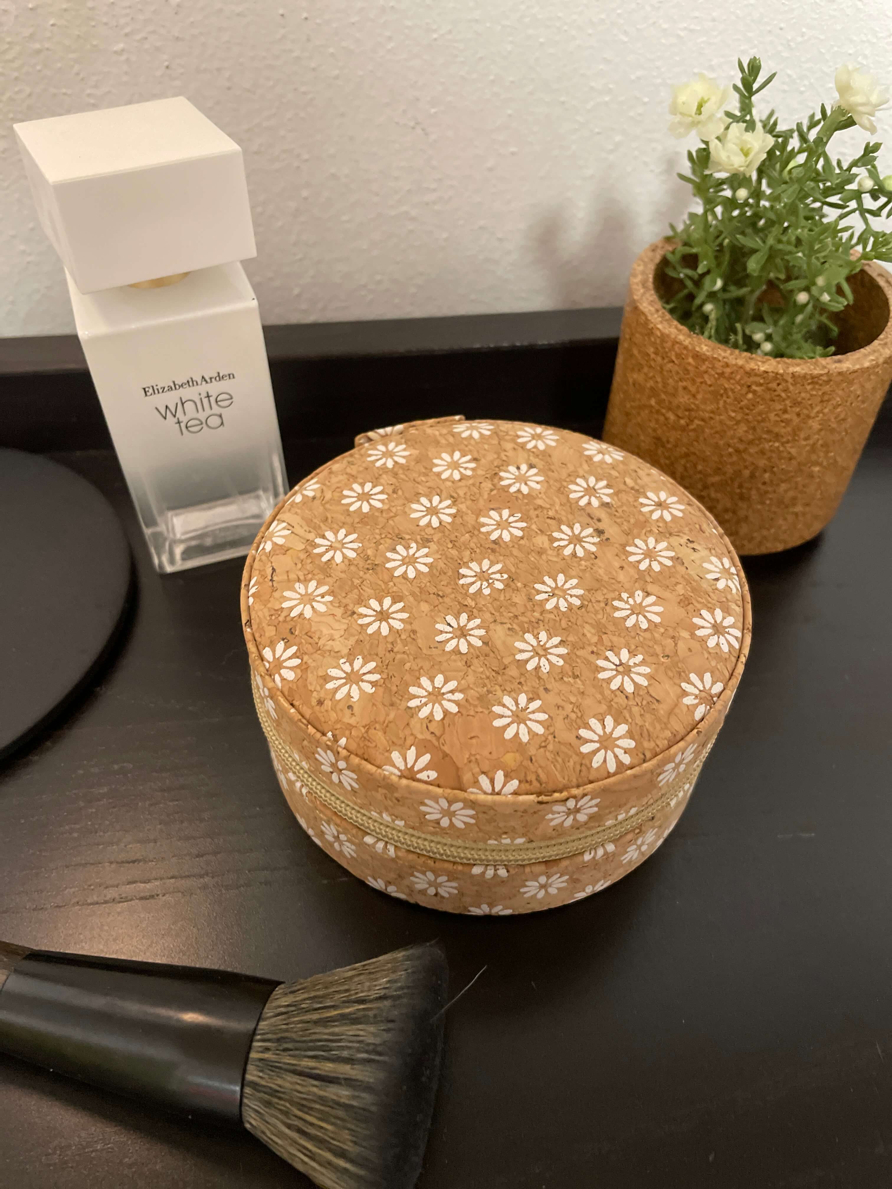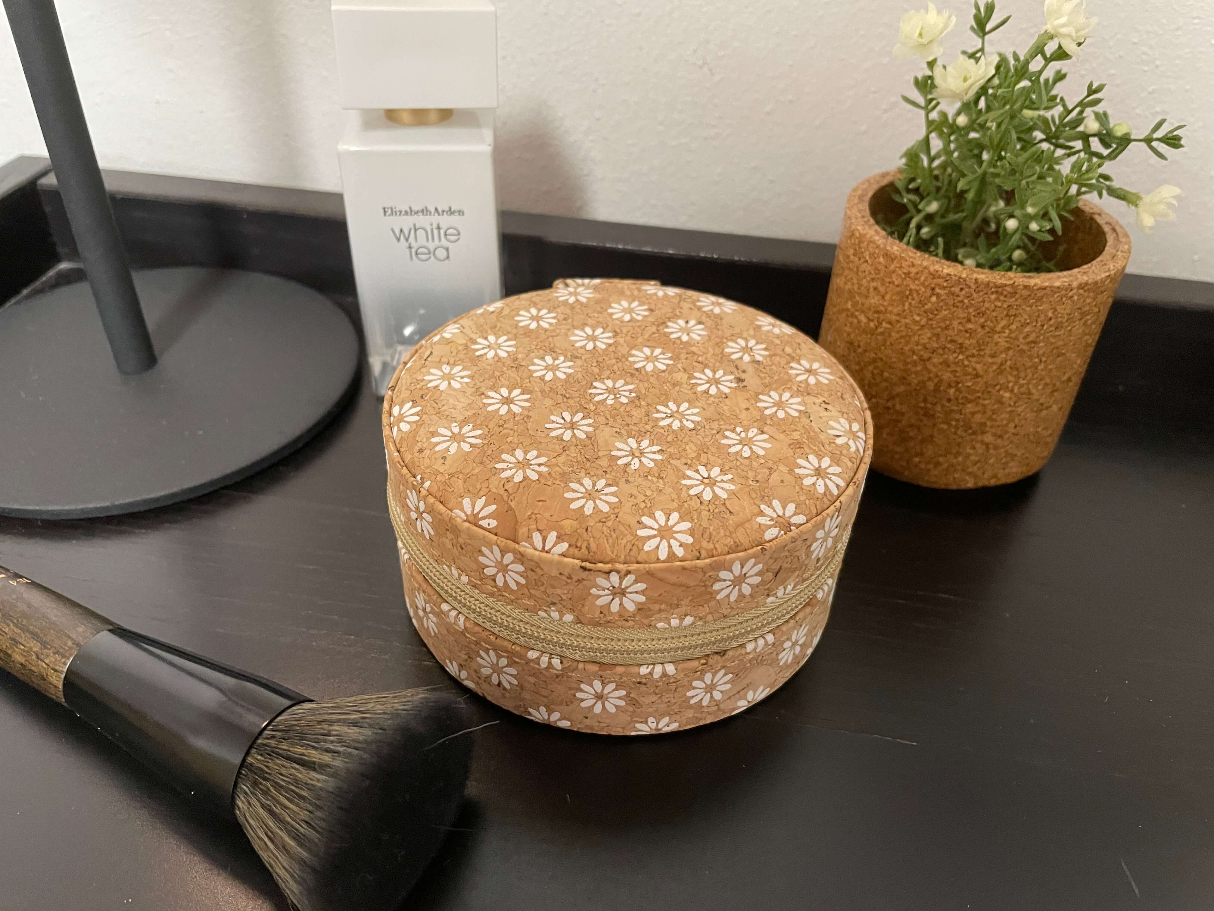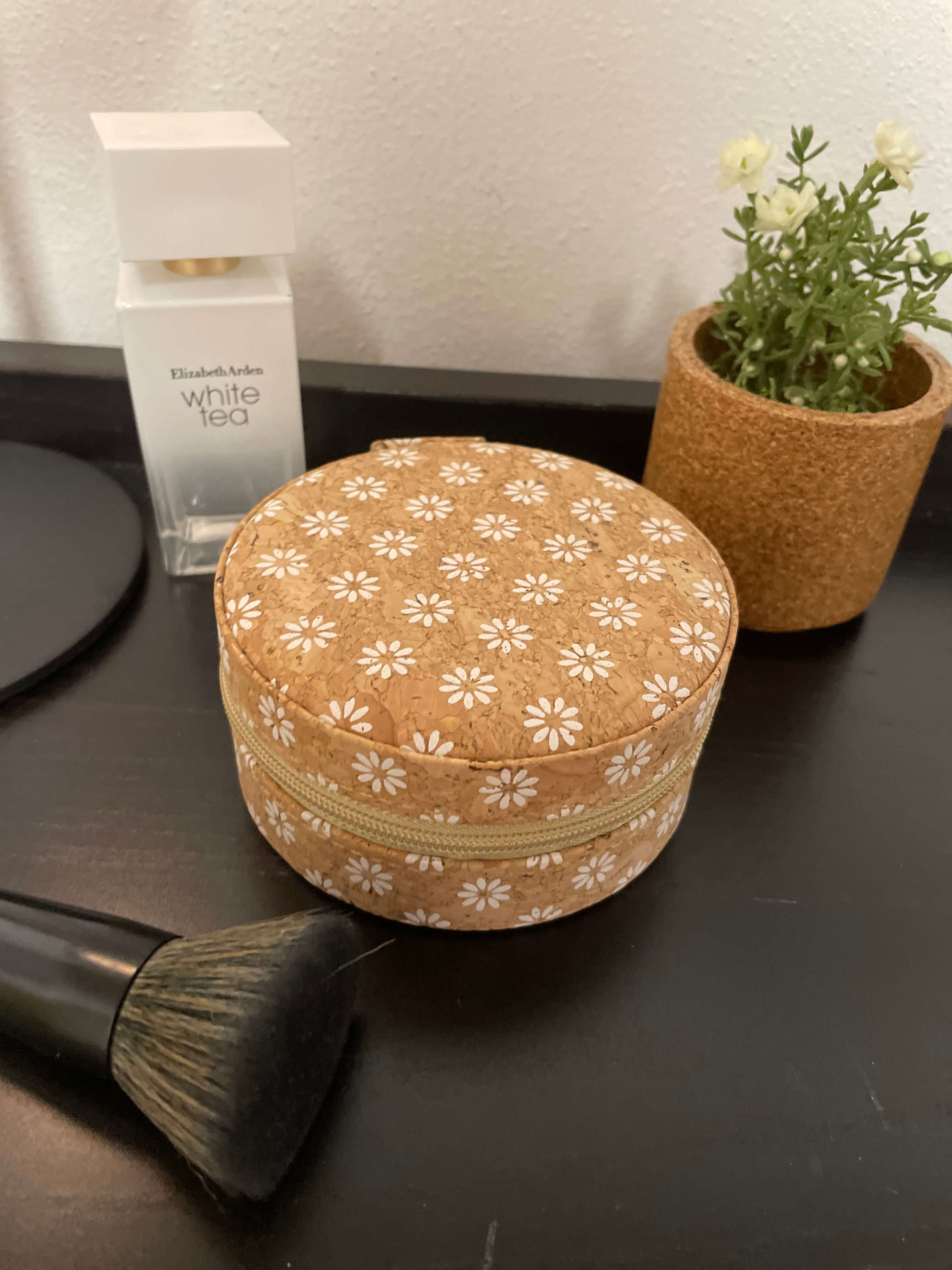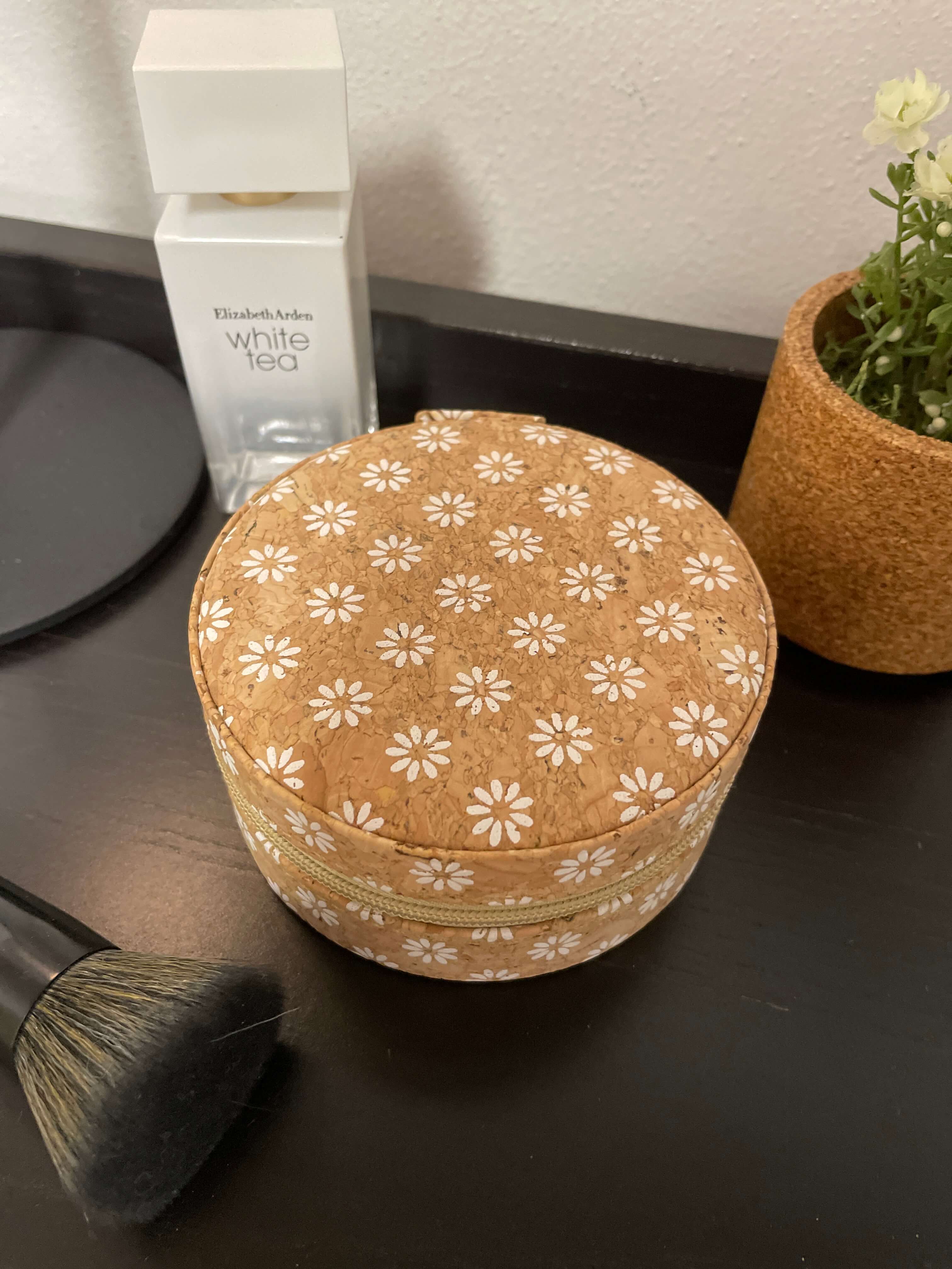 Der er noget helt særligt ved at åbne et smykkeskrin og lade fingrene glide hen over dine yndlingssmykker – hver især fyldt med minder og betydning. Dette fine, runde smykkeskrin med det smukke hvide blomstermønster er skabt til at passe på dine små skatte og gøre din hverdag lidt mere hyggelig og organiseret.