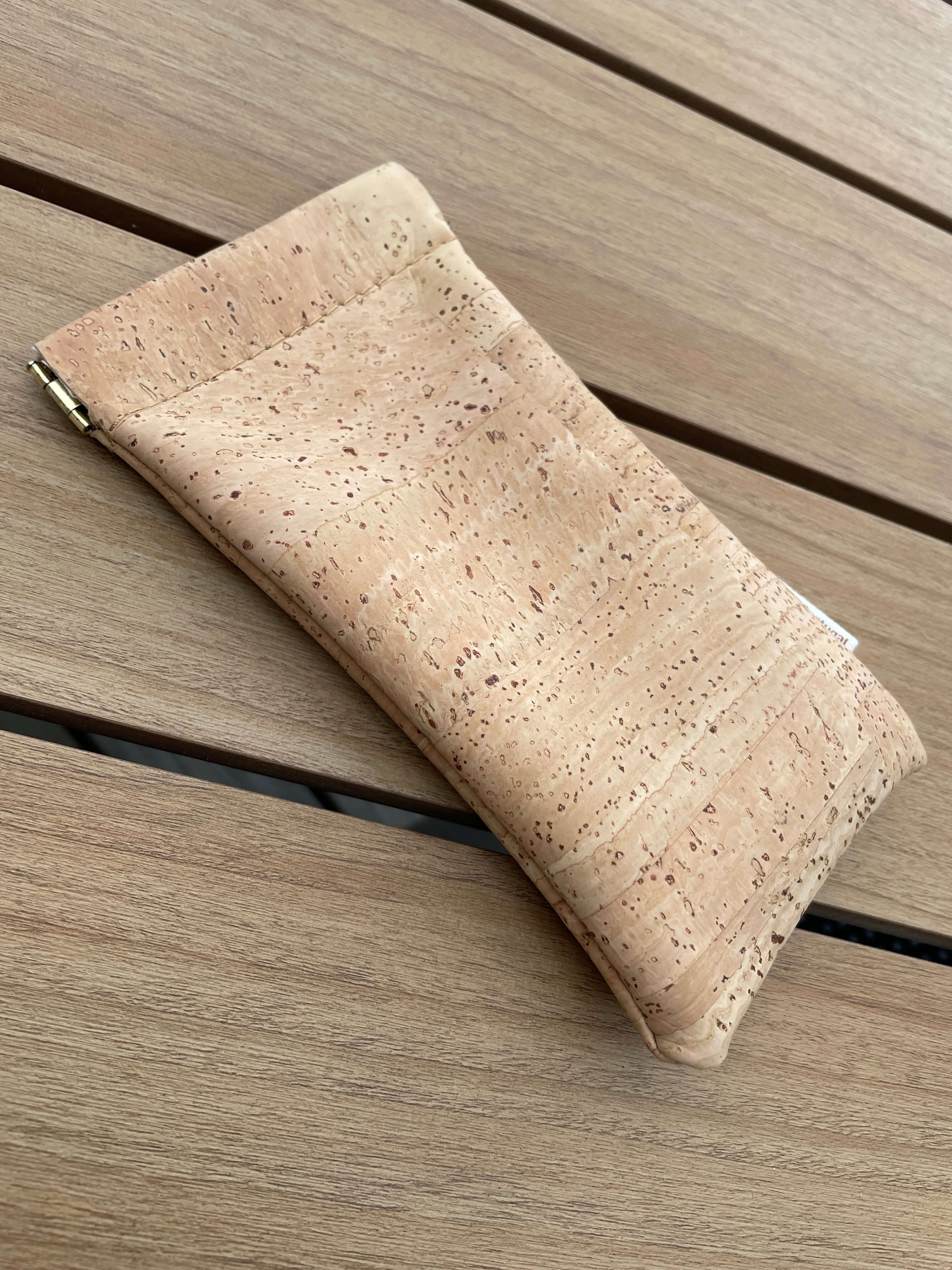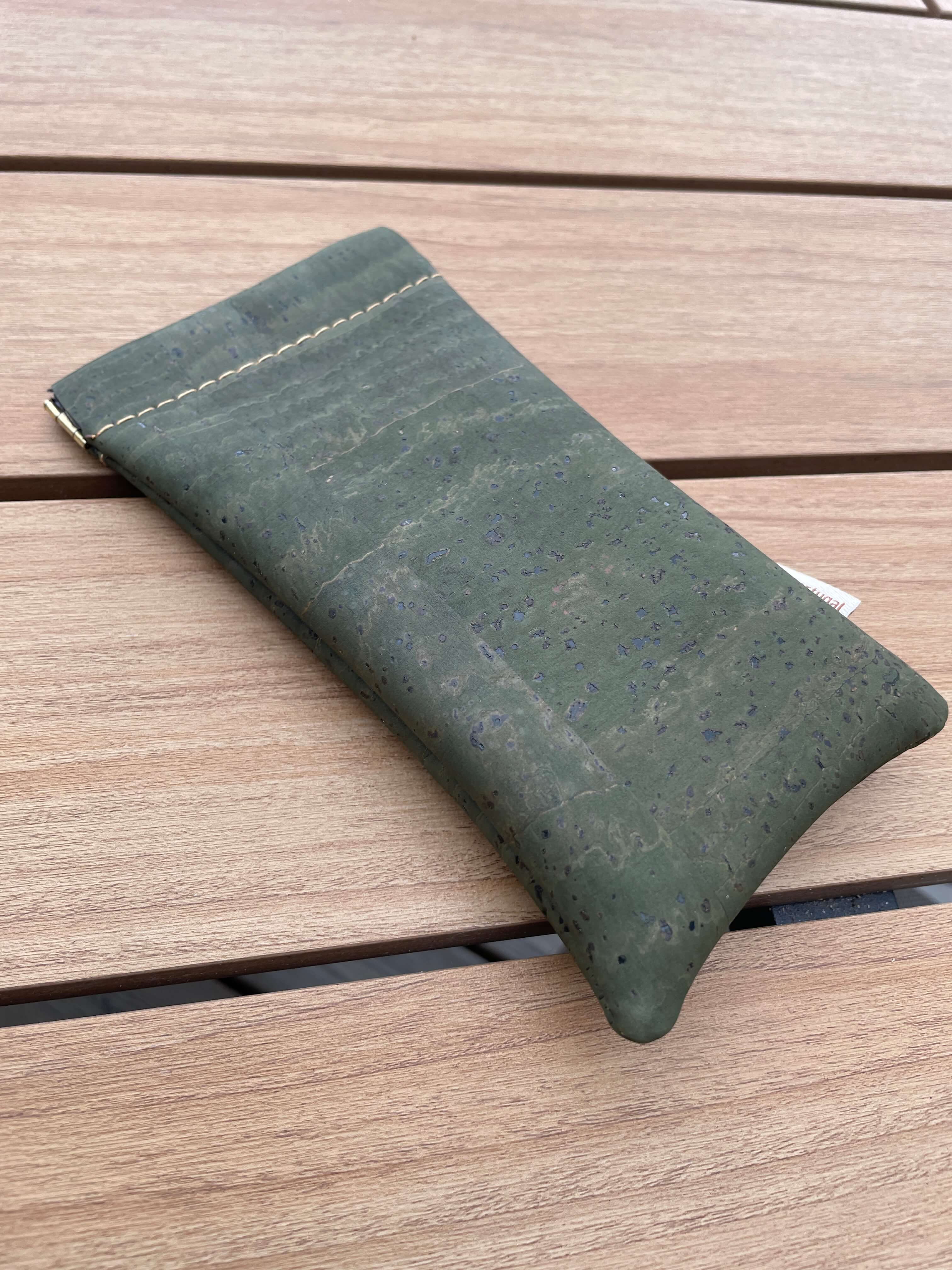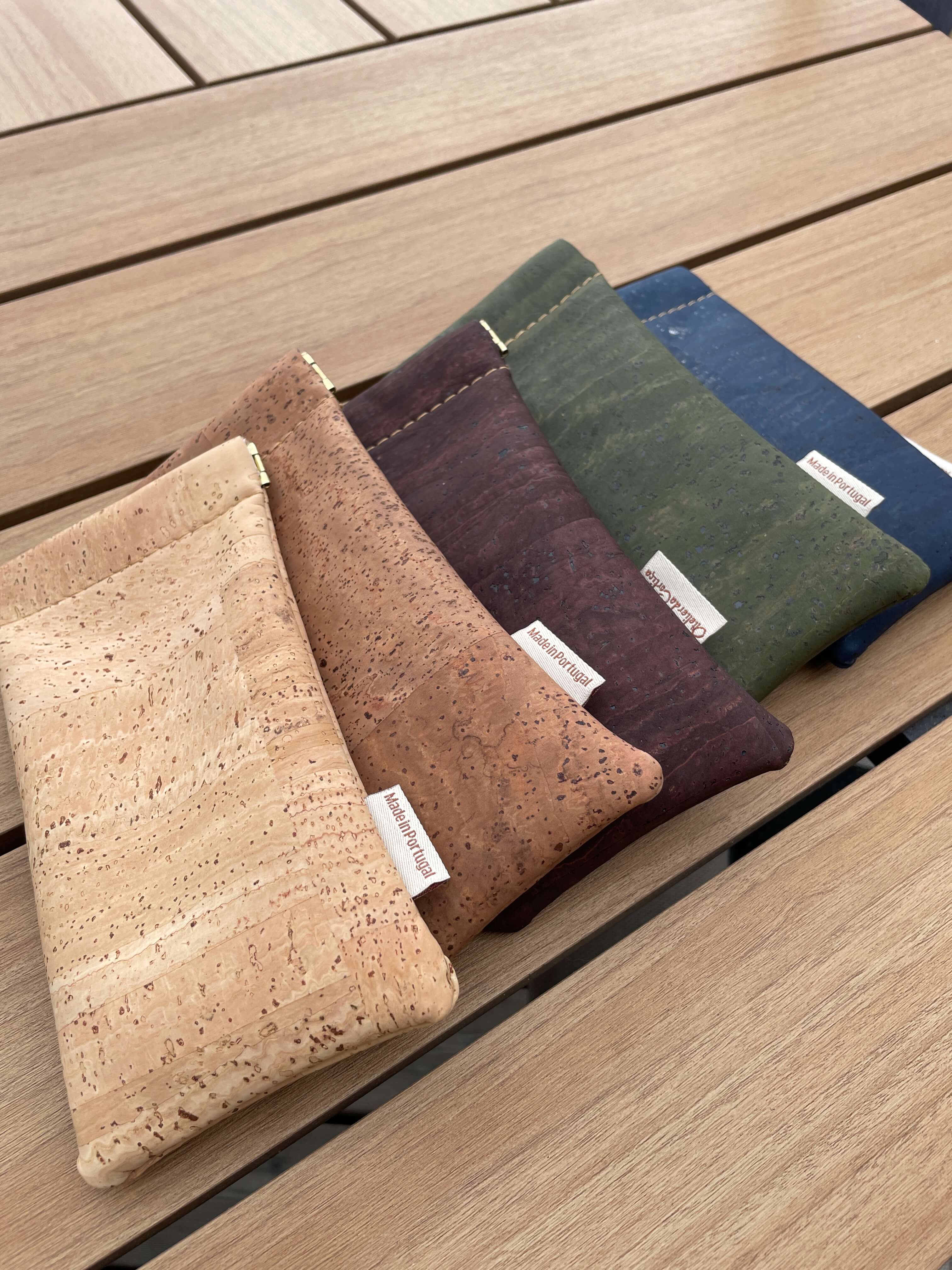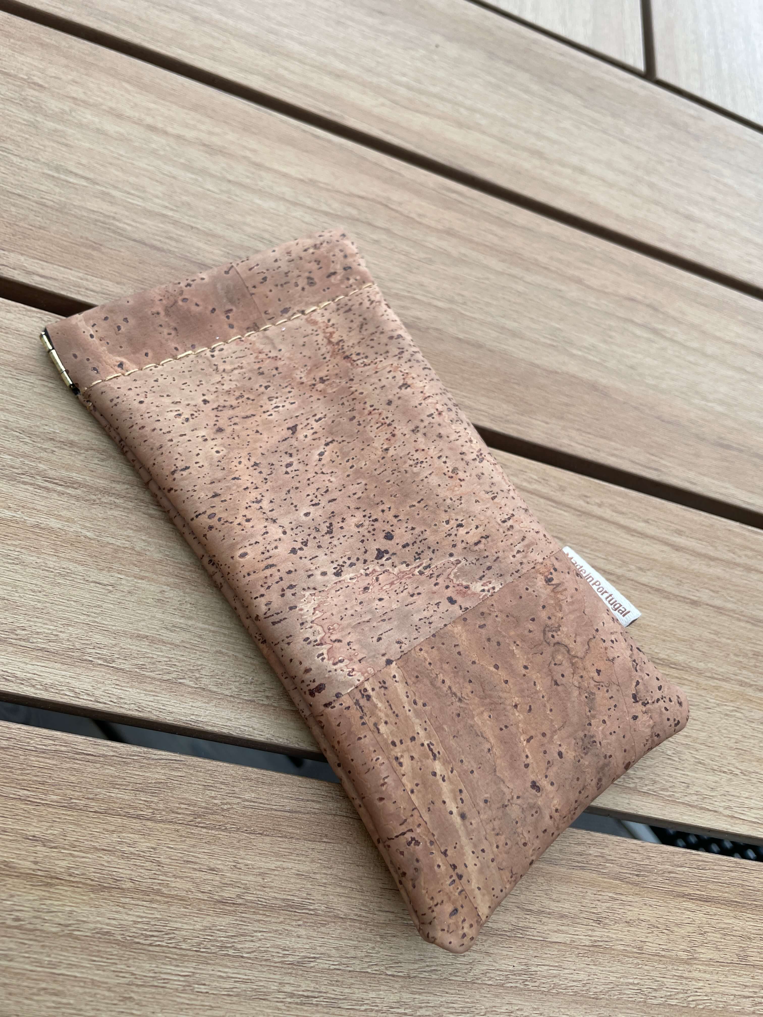 Korken til dette etui høstes nænsomt fra korkegen i Portugal – uden at fælde træet. Når barken fjernes, optager træet endda endnu mere CO₂. Du får altså et produkt, der både er praktisk, smukt og produceret med respekt for naturen.