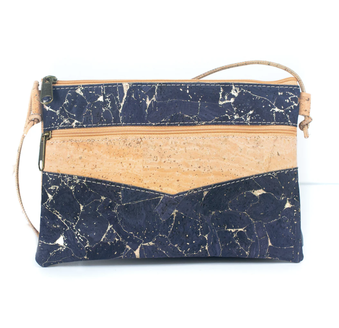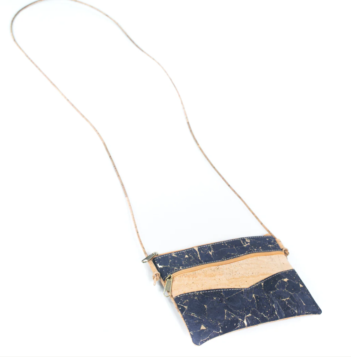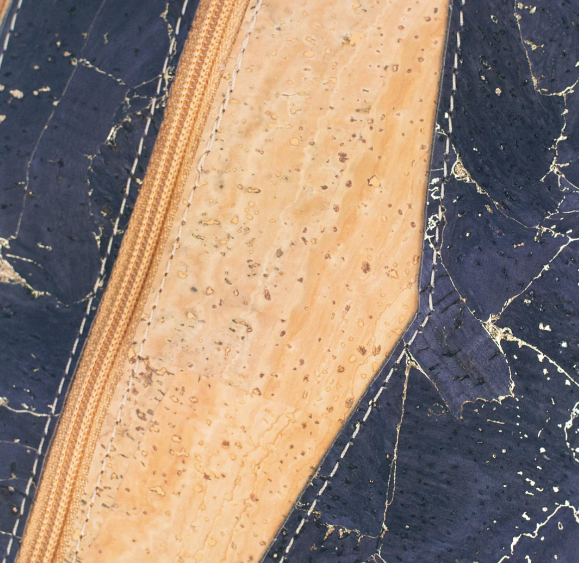 Denne lille taske i kork forener naturlig skønhed med moderne stil og vil hurtigt blive din nye favorit. Tasken er lavet i en smuk kombination af naturkork og mørkeblåt kork, prydet med et delikat guldmønster, som giver et sofistikeret og varmt udtryk. Den er ideel til at opbevare din mobiltelefon, nøgler og andre små ejendele, som du gerne vil have med dig på farten.