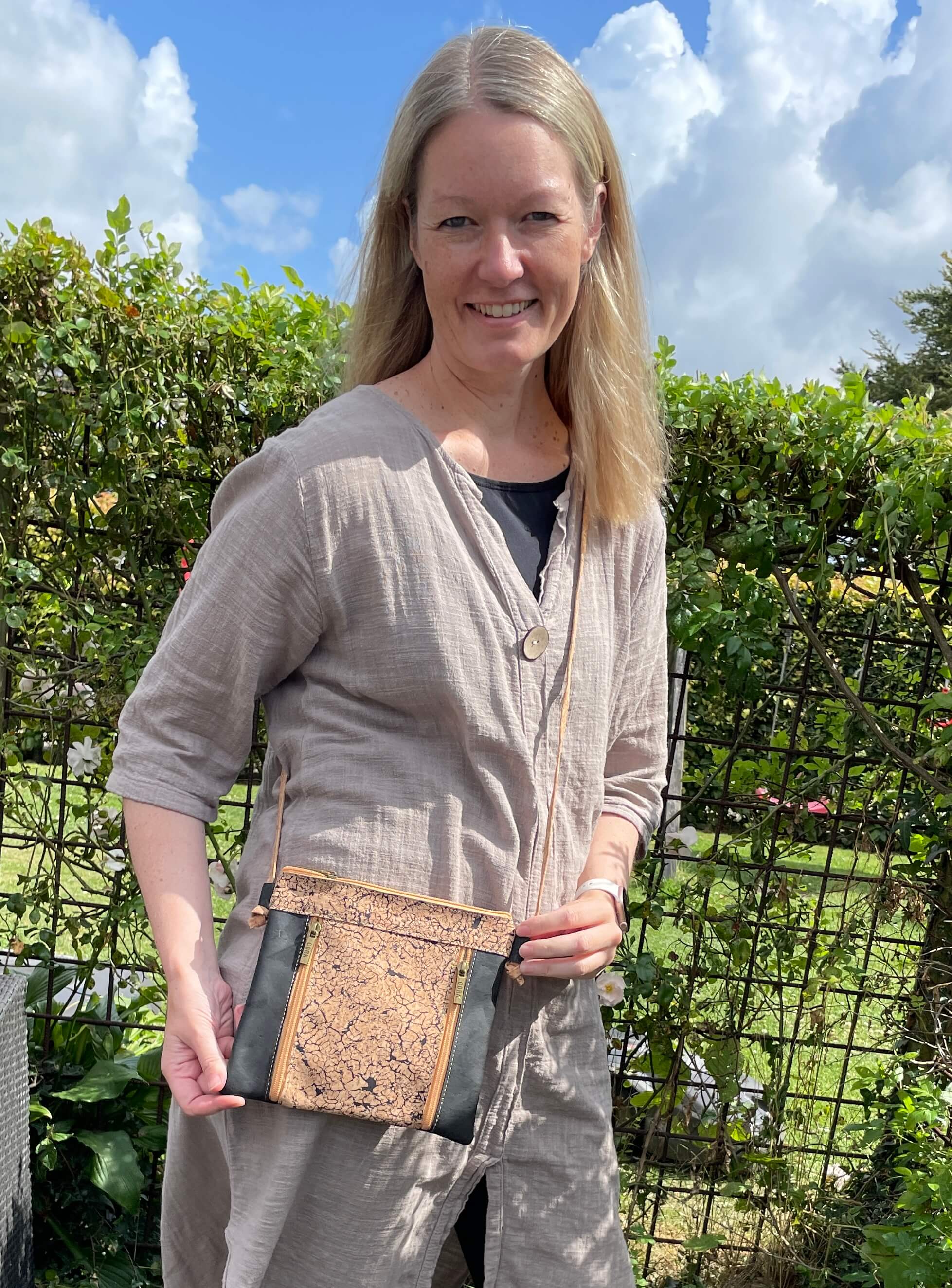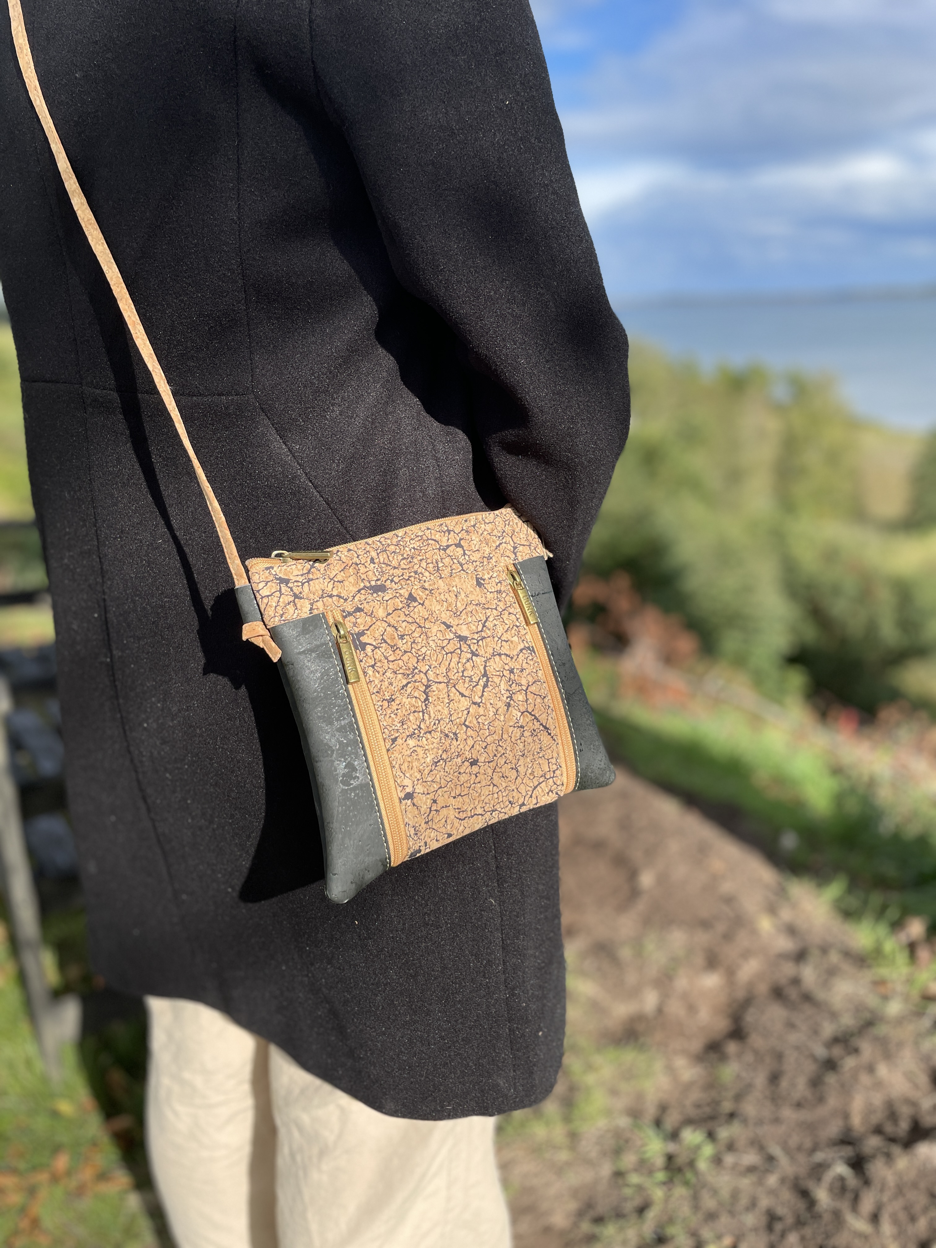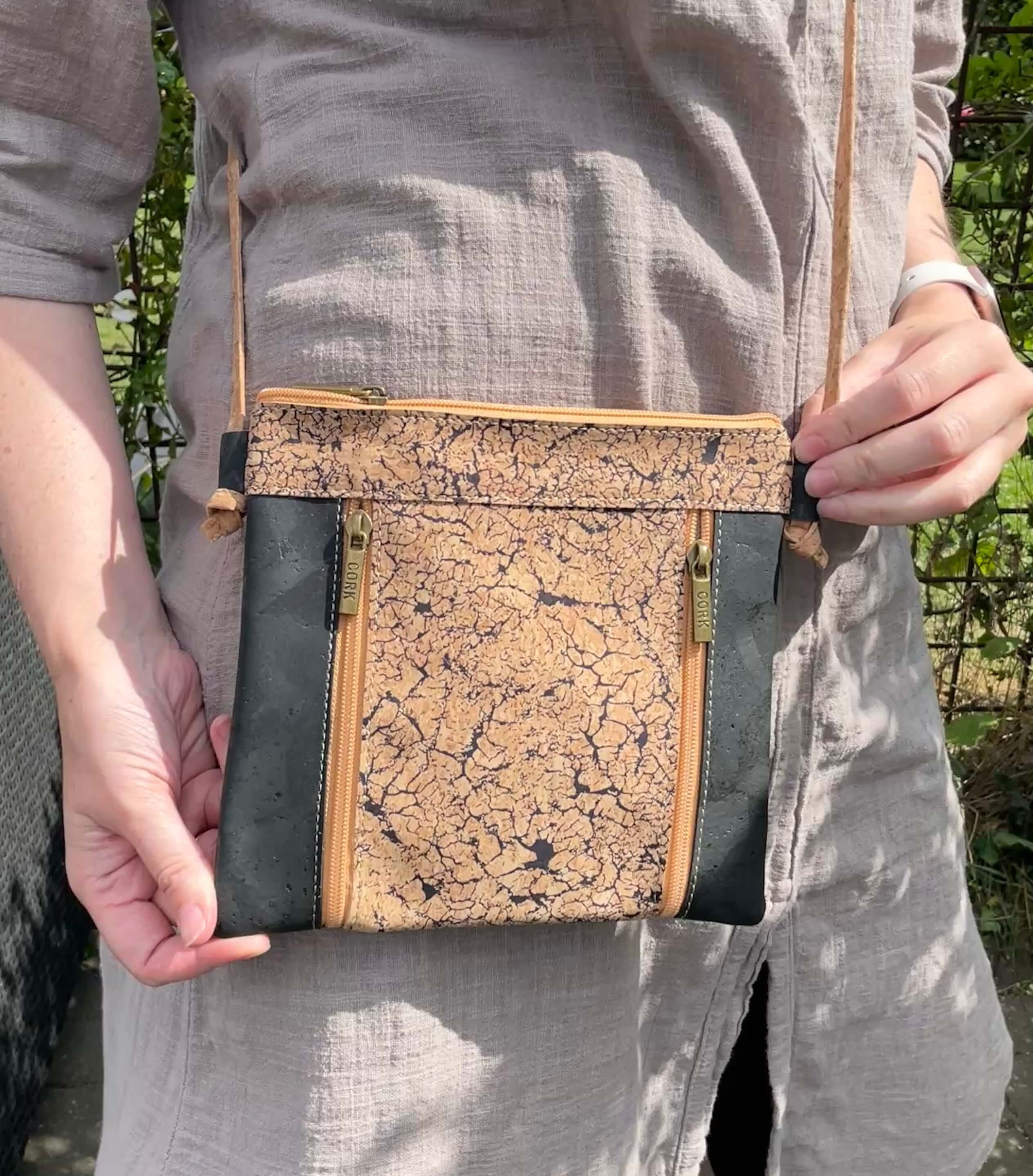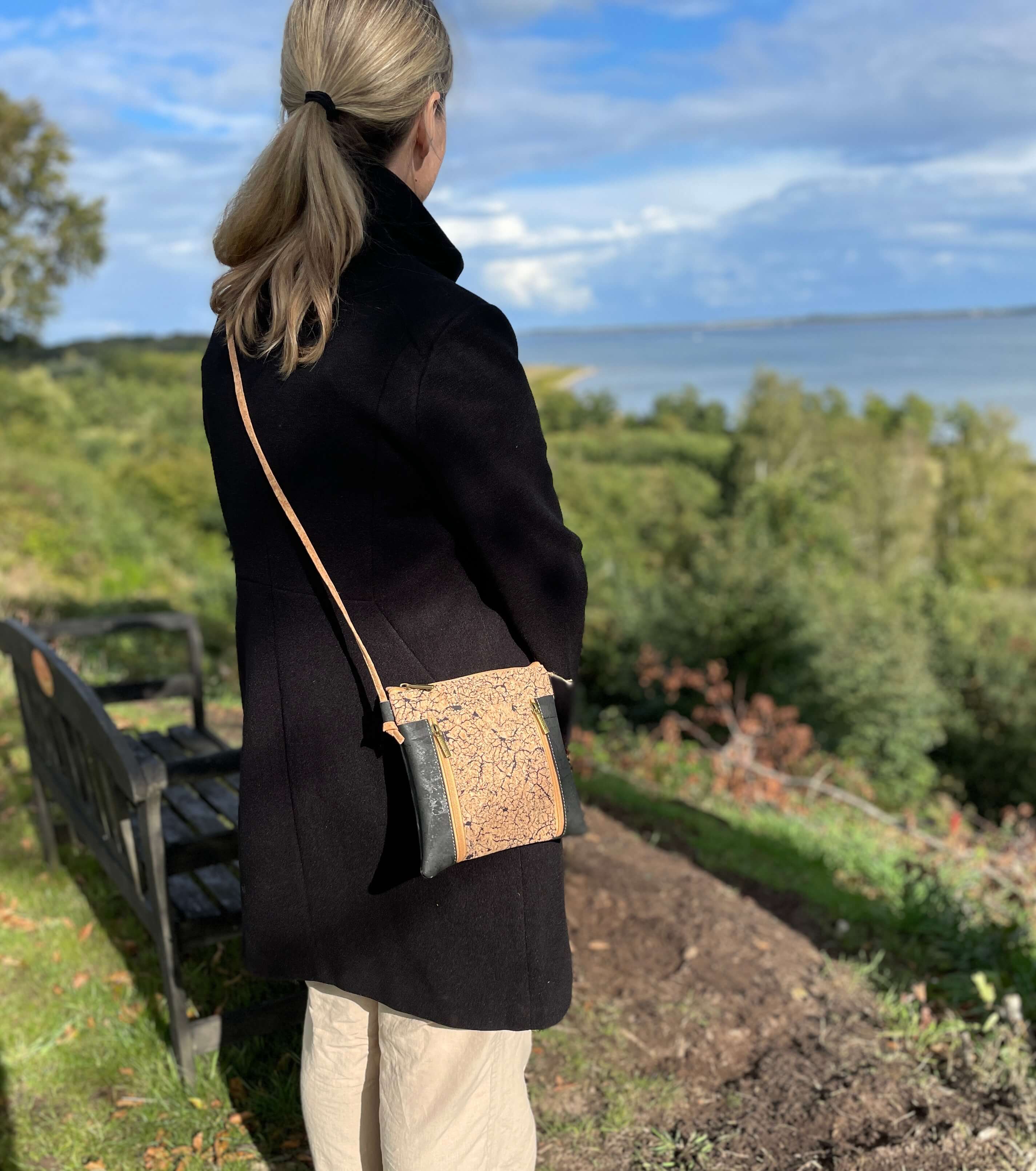 Kork er et blødt og holdbart materiale, der samtidig er utrolig let. Du kan nemt tørre tasken af med en fugtig klud – evt. med en smule mild opvaskemiddel, hvis den trænger. Og ja – regndråber preller af, så du skal ikke bekymre dig, hvis vejret driller lidt.