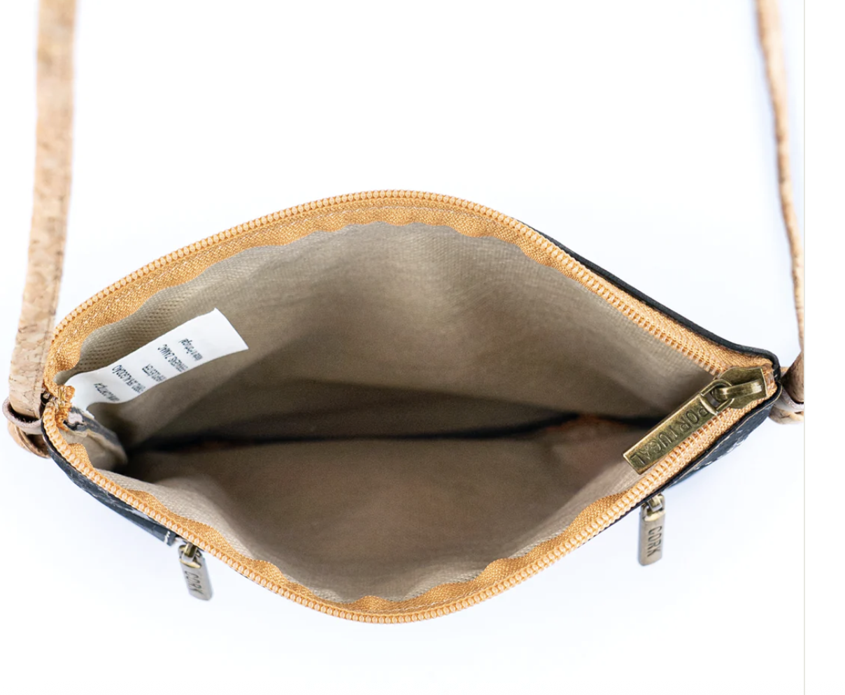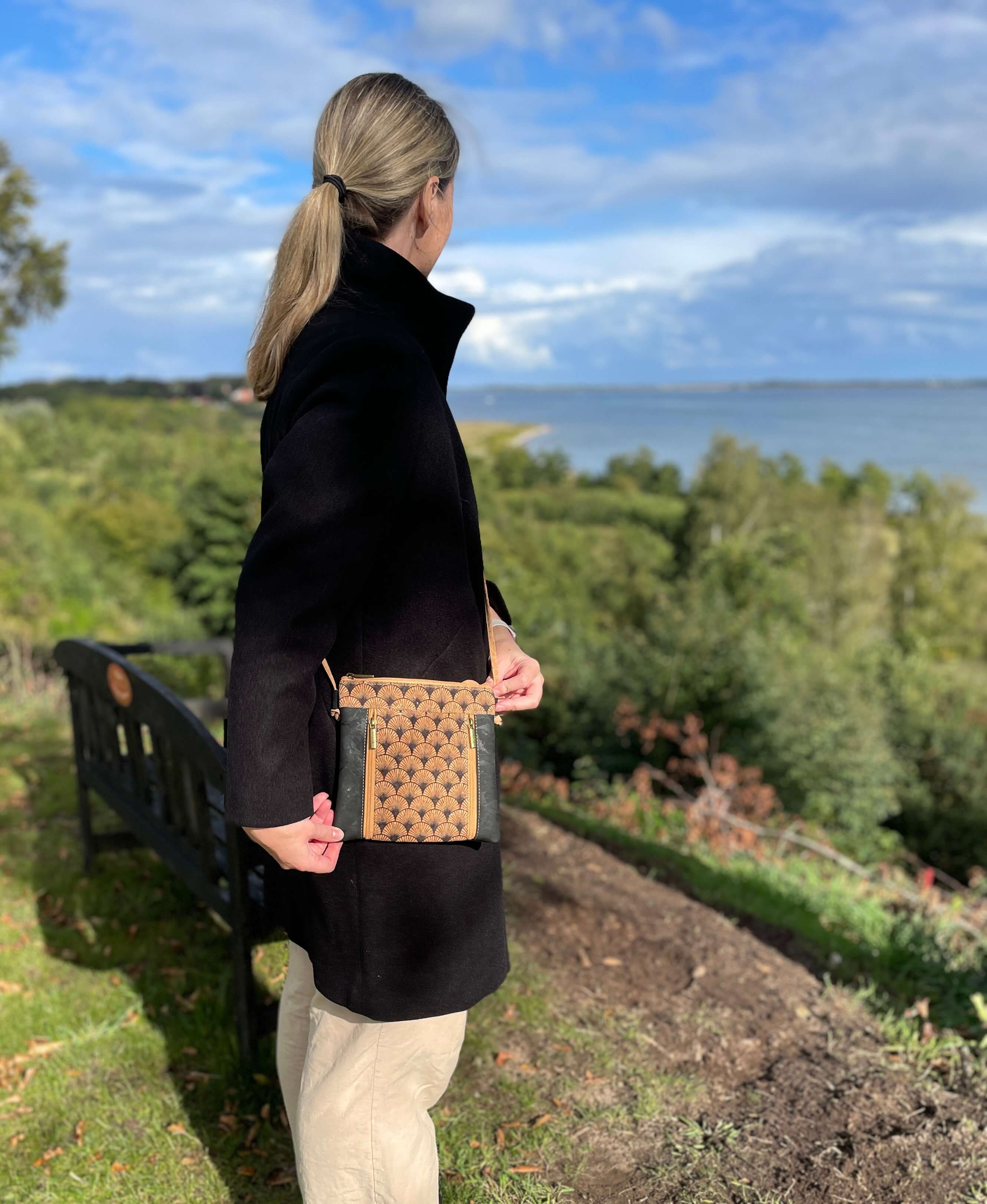 Kork er et blødt og holdbart materiale, der samtidig er utrolig let. Du kan nemt tørre tasken af med en fugtig klud – evt. med en smule mild opvaskemiddel, hvis den trænger. Og ja – regndråber preller af, så du skal ikke bekymre dig, hvis vejret driller lidt.