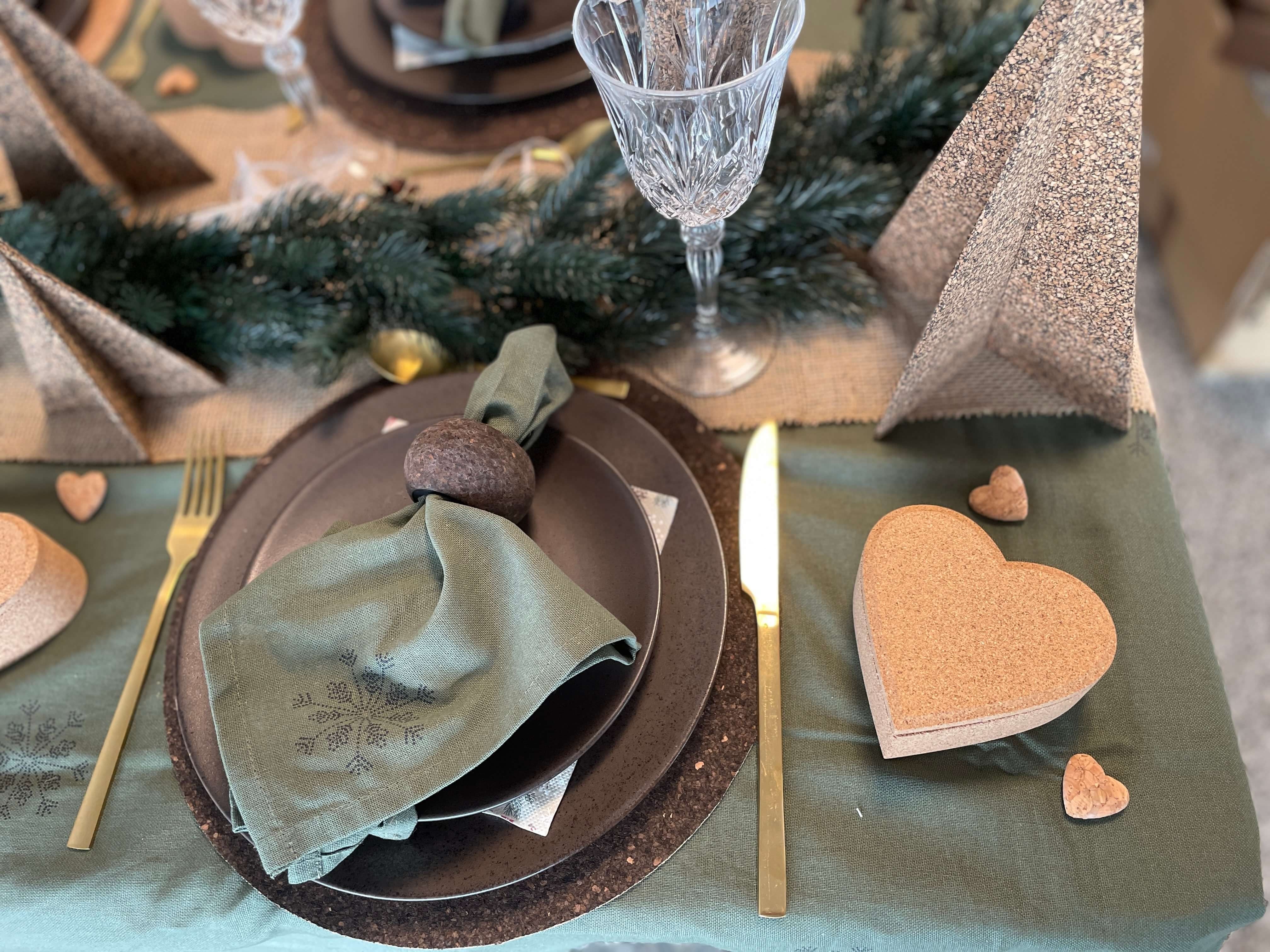 Servietringene er lavet af kork af høj kvalitet, høstet nænsomt fra korkegetræets bark i Portugal – uden at træet fældes. Når barken vokser ud igen, optager træet mere CO₂, og korken bliver dermed et materiale, der både føles godt og gør godt.