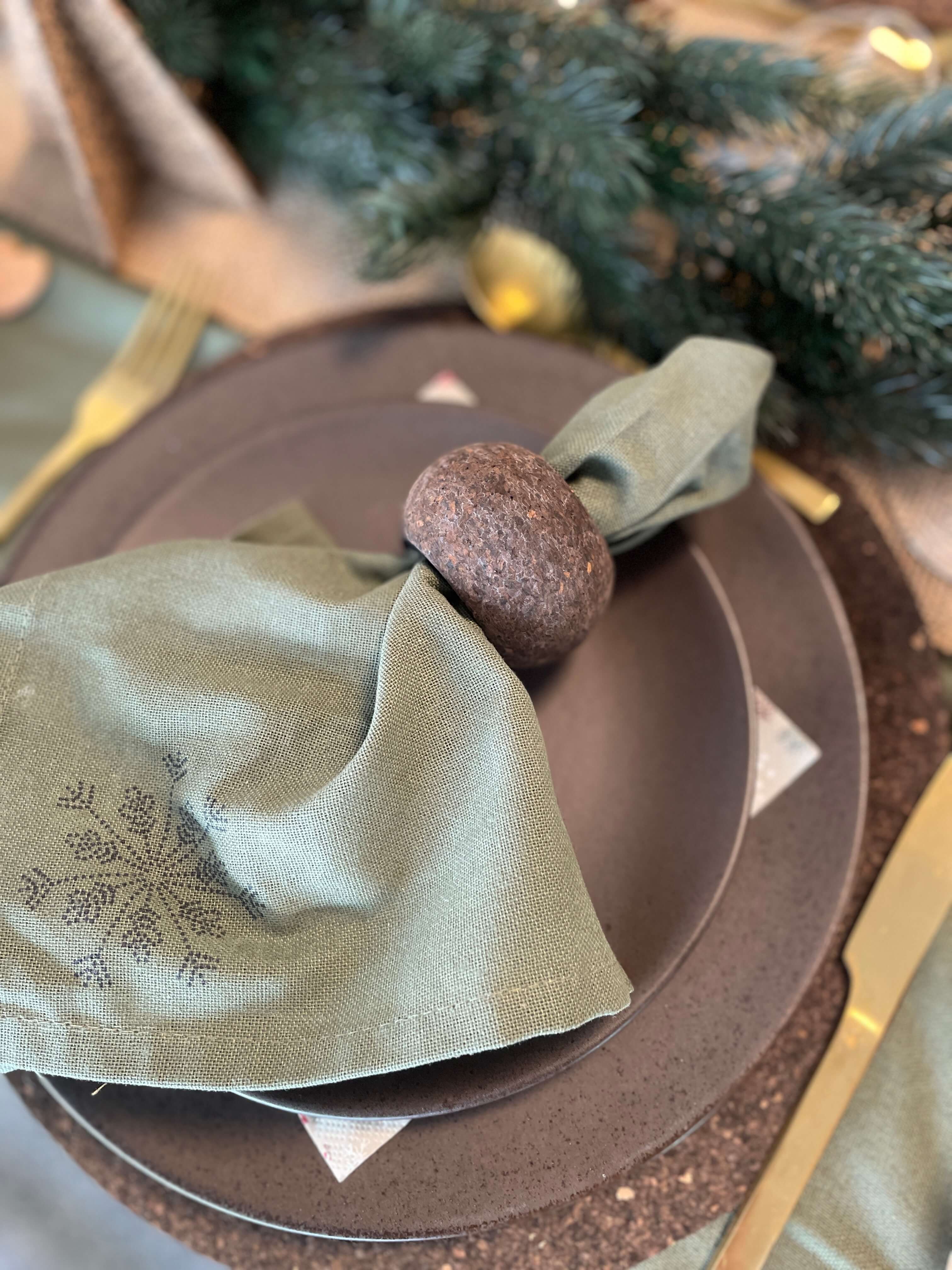 Servietringe i brunsort kork – naturlig elegance til borddækningen