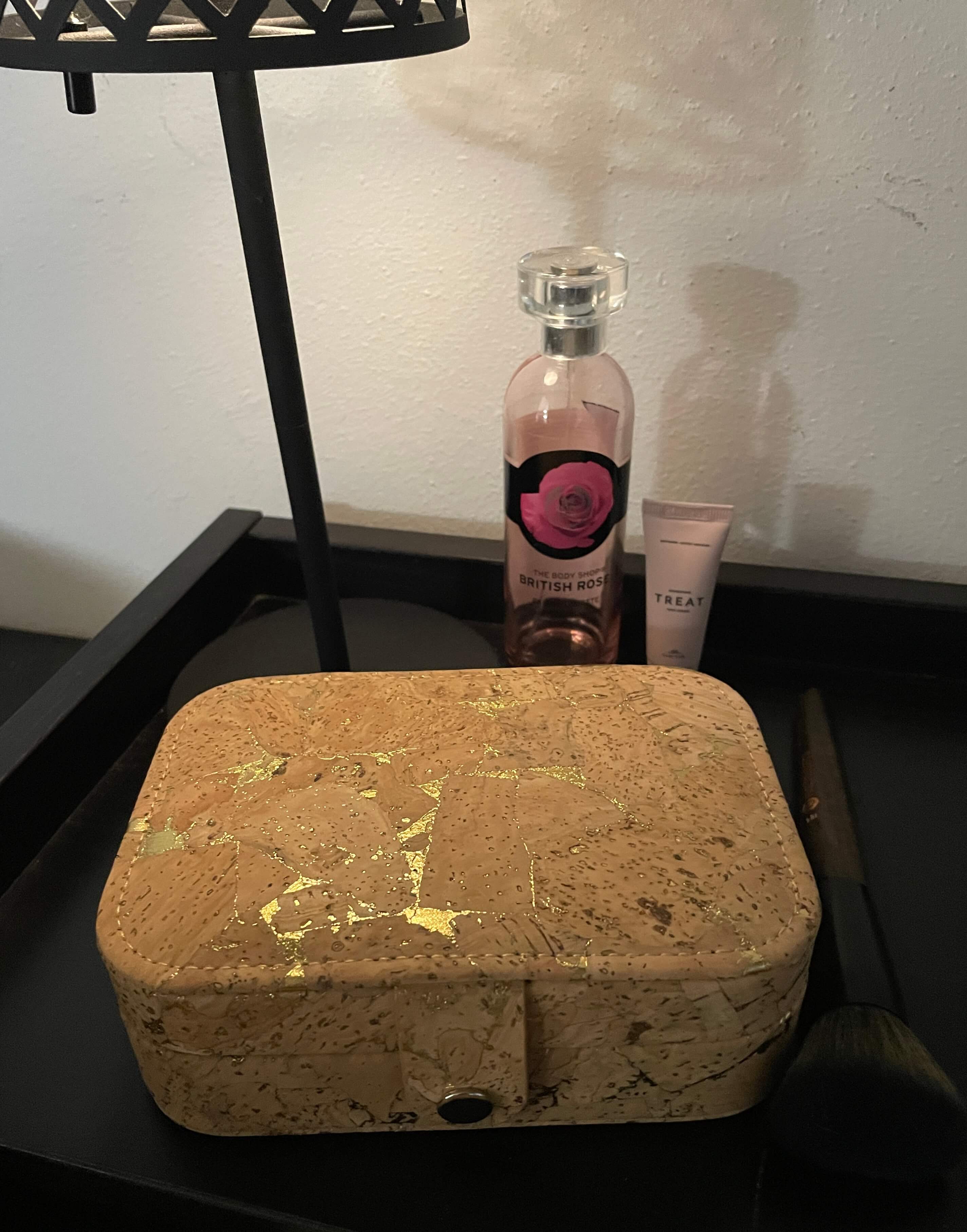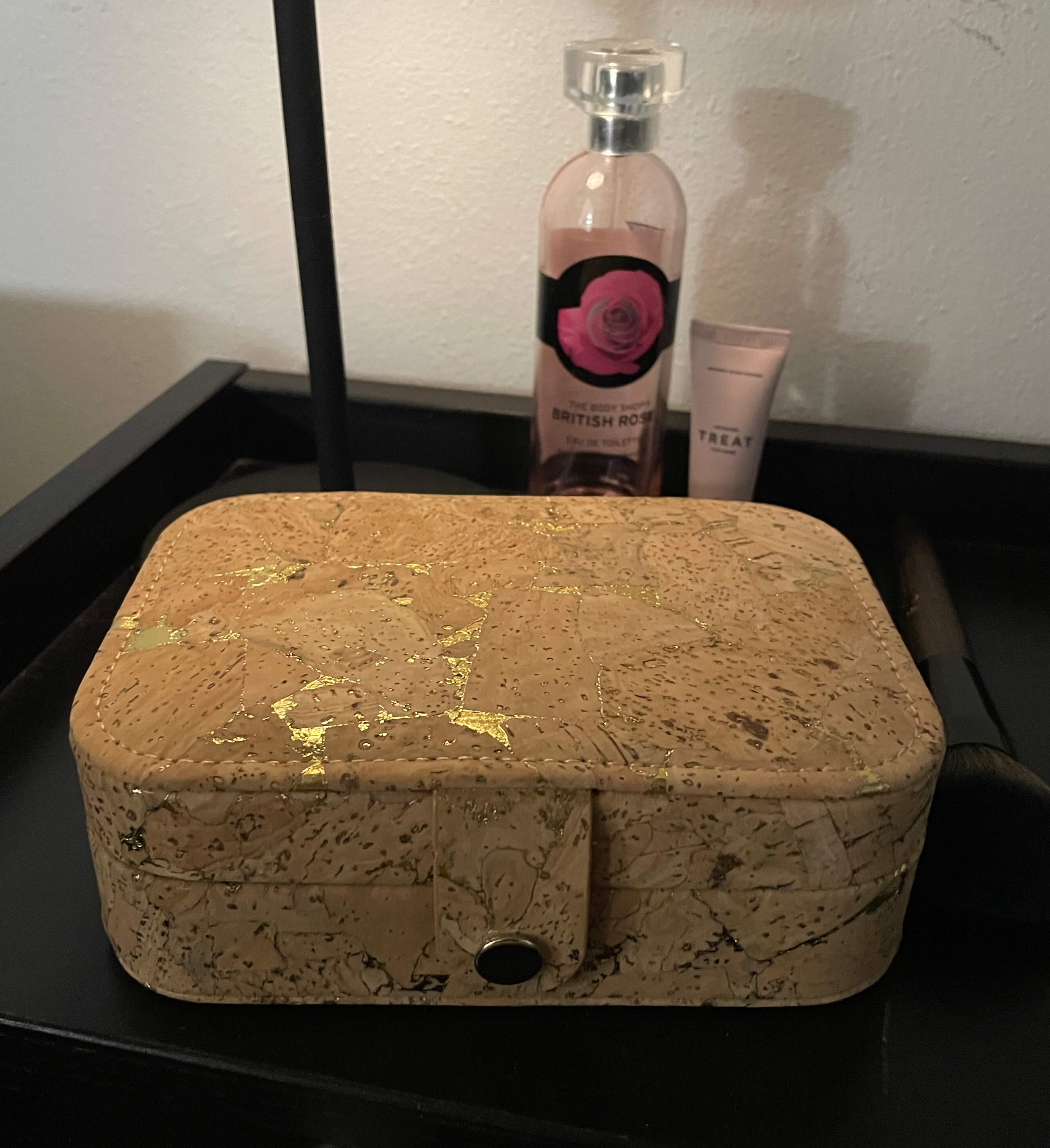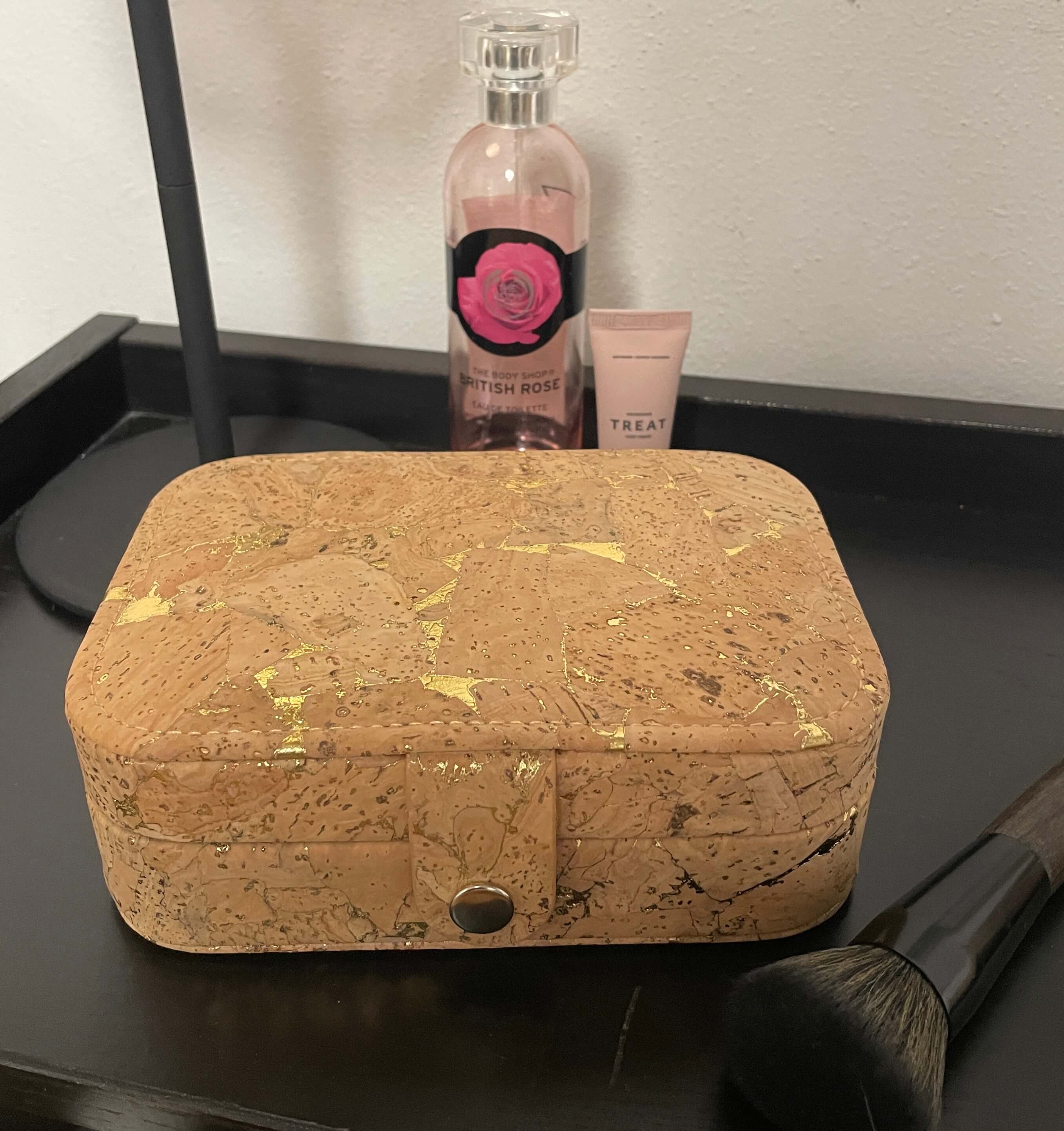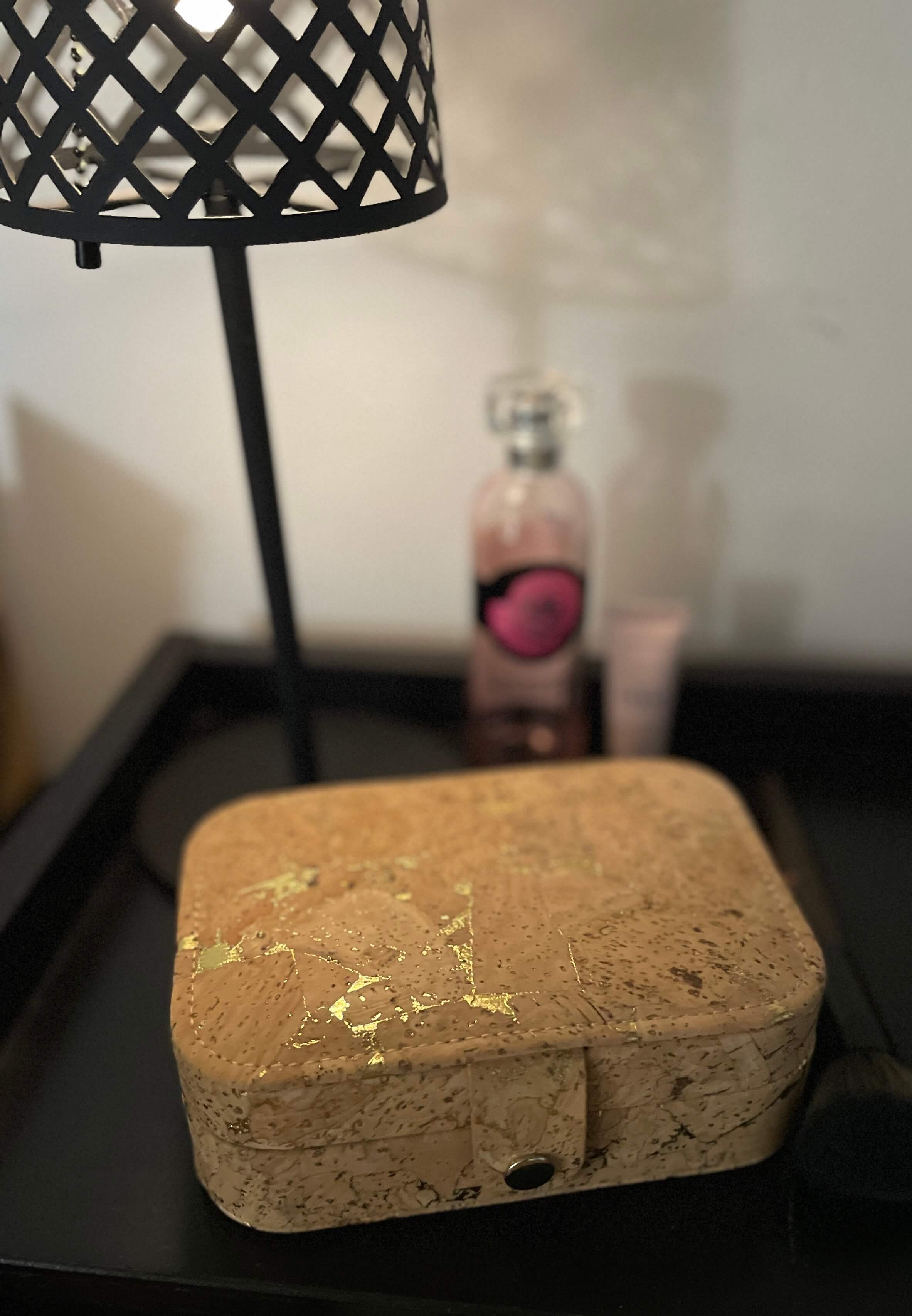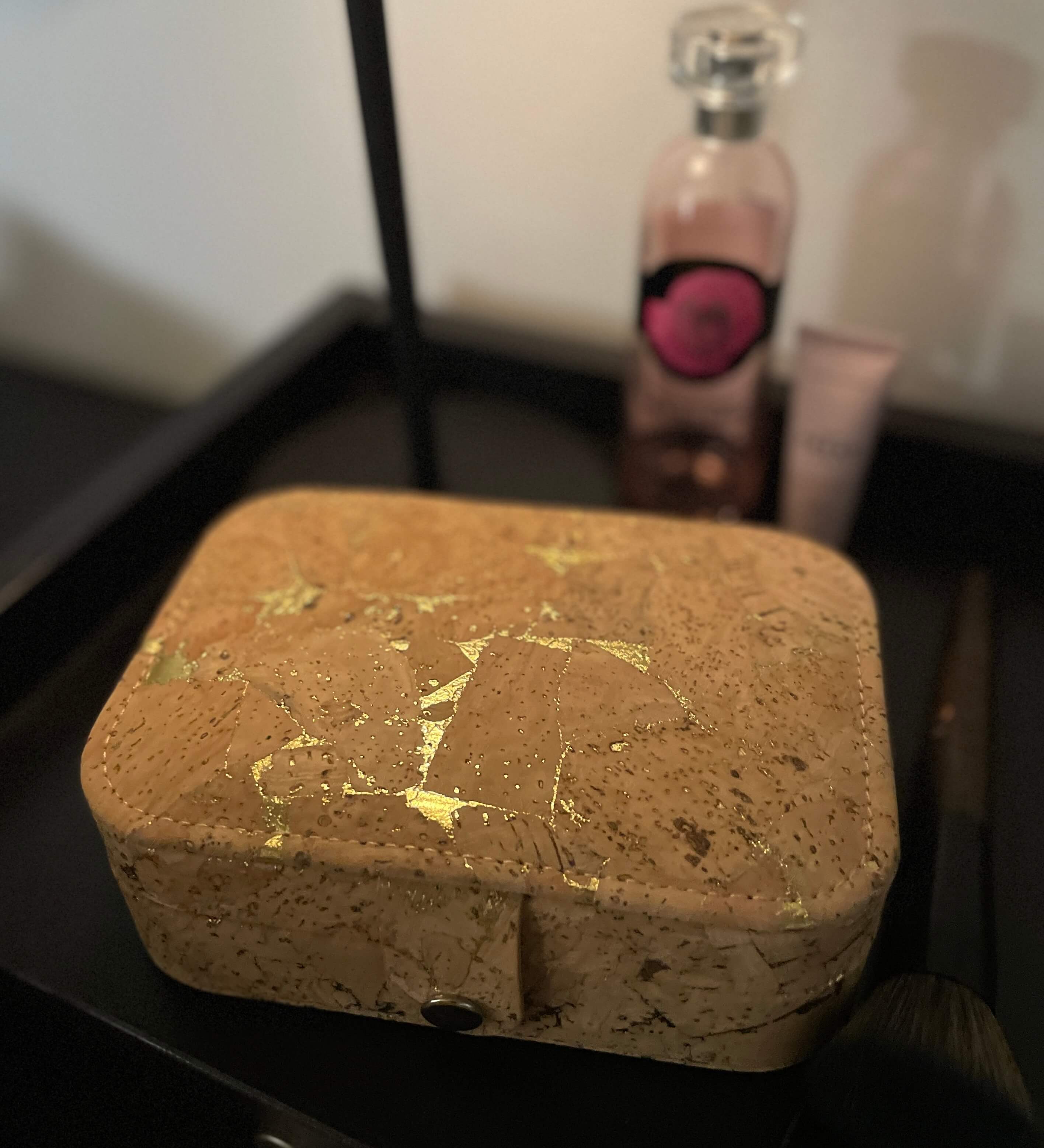 Det ultimative smykkeskrin – eksklusivt design i naturkork med guldmønster