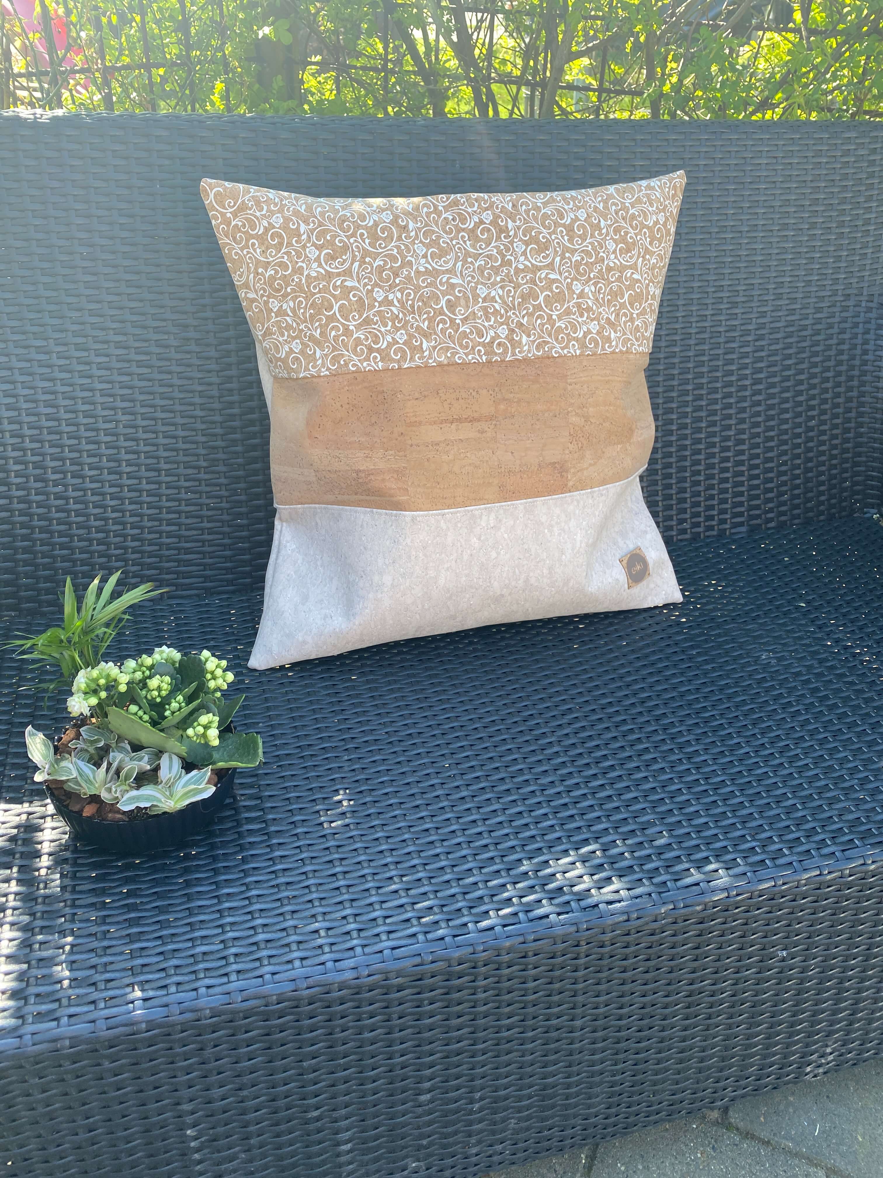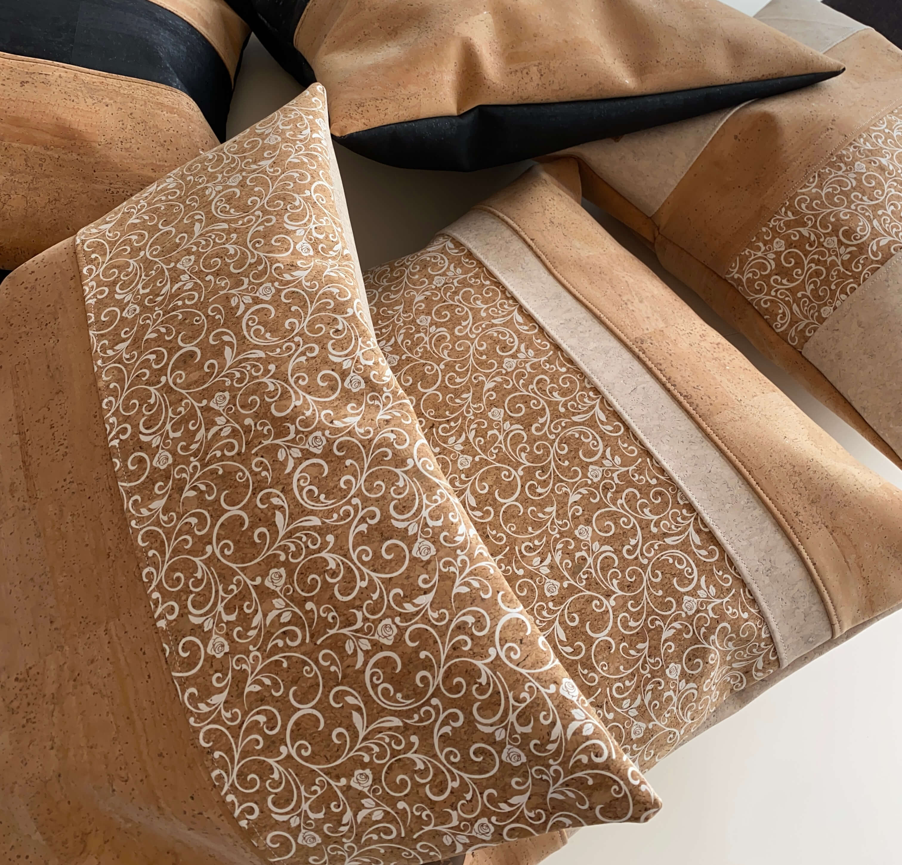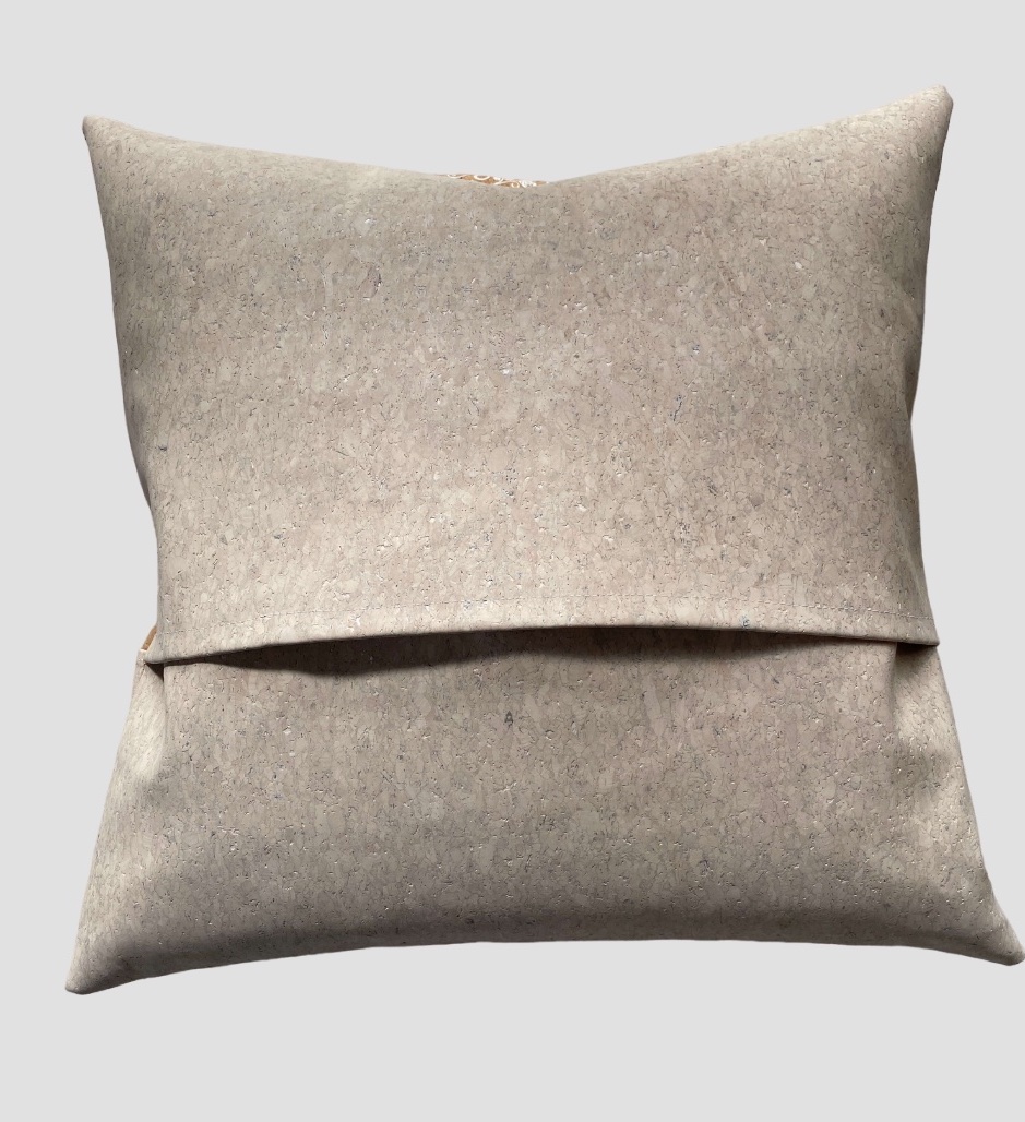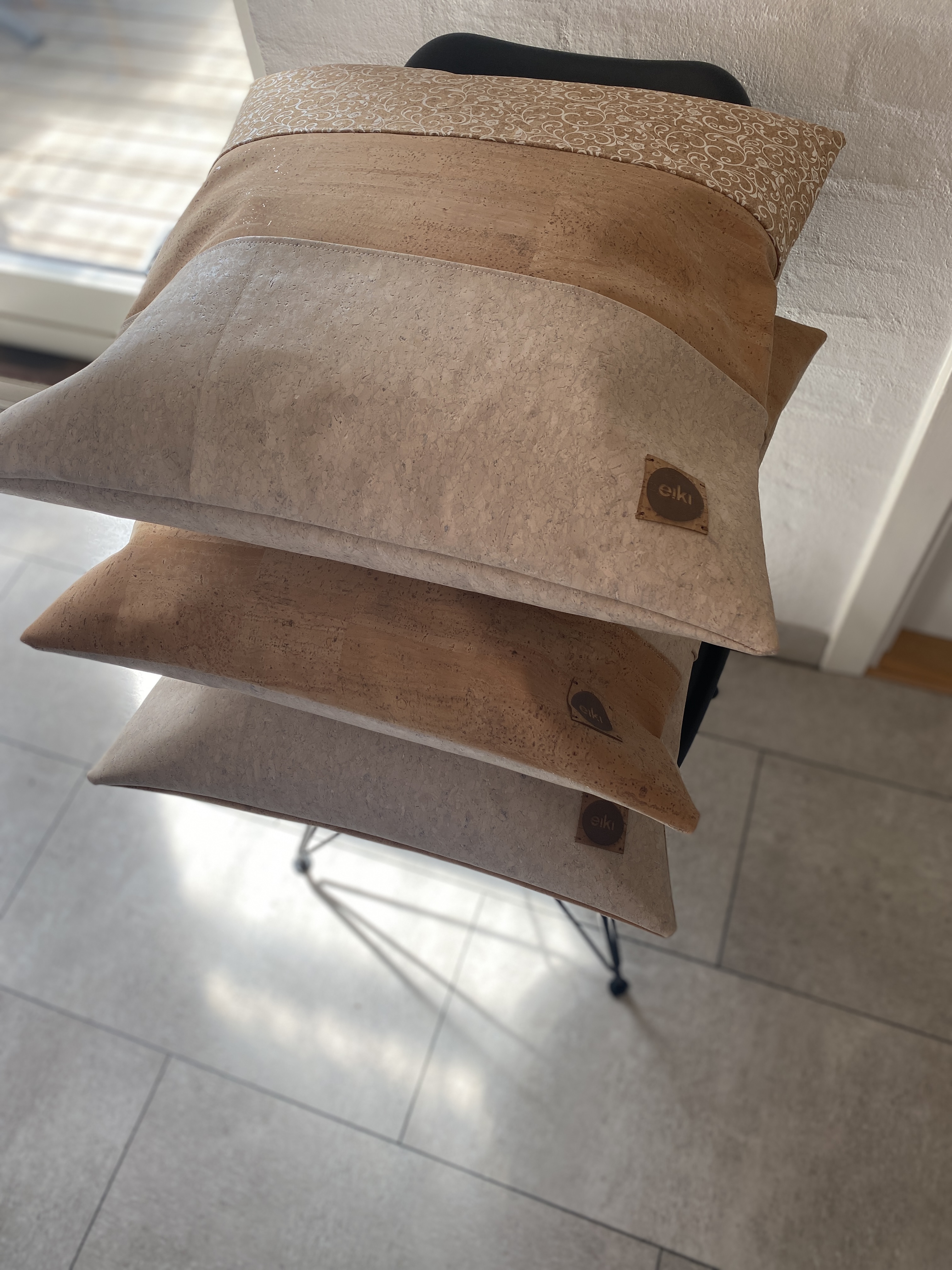 Korken kommer fra de portugisiske korkege, hvor barken nænsomt høstes uden at fælde træet. Et smukt eksempel på, hvordan vi kan bruge naturens ressourcer med respekt. Samtidig binder træerne CO₂ år efter år – også efter høsten. Det giver dig en pude, der ikke bare føles rar i hænderne, men som også bærer på en god historie.