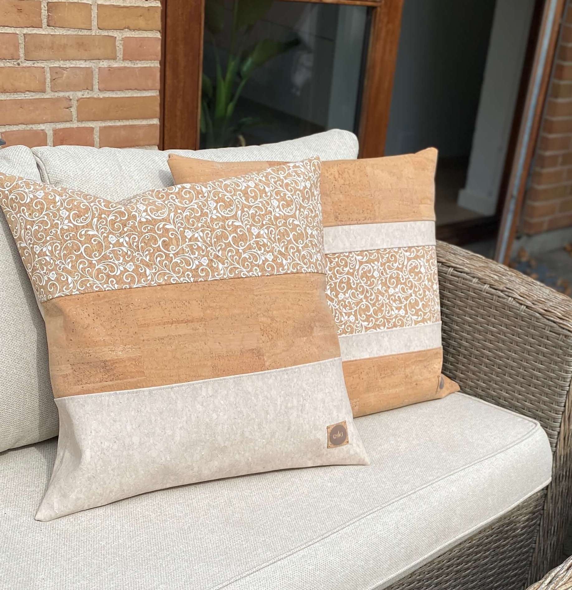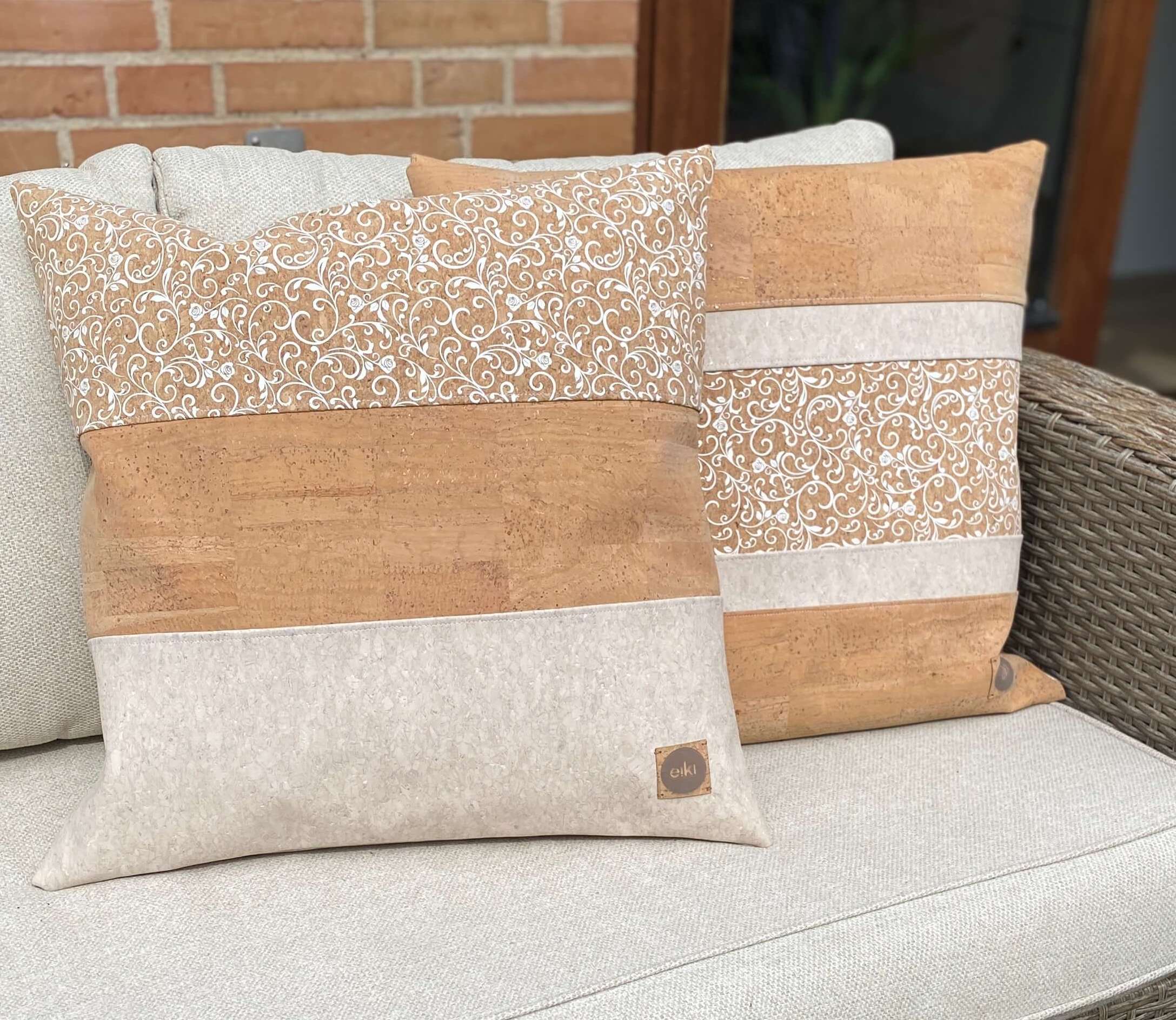 Det robuste korklæder gør puden ideel både inde og ude. Skulle det begynde at dryppe fra himlen, preller regnen blot af – og puden holder sig fin og tør. Den er perfekt til udendørshjørner, der skal have et kærligt løft – og ligeså fin i stuen, hvor den hvide og naturfarvede overflade skaber lethed og varme i indretningen.
