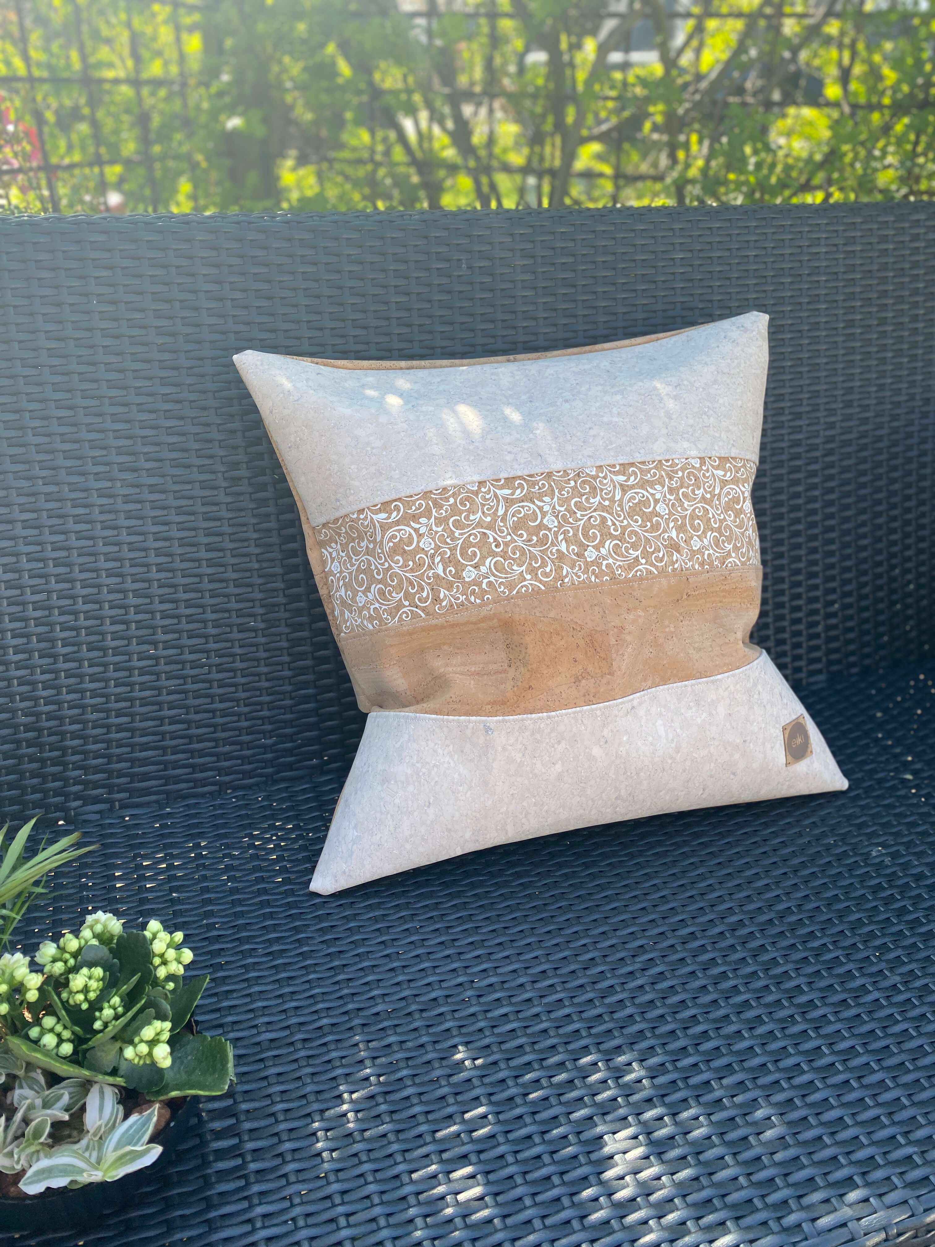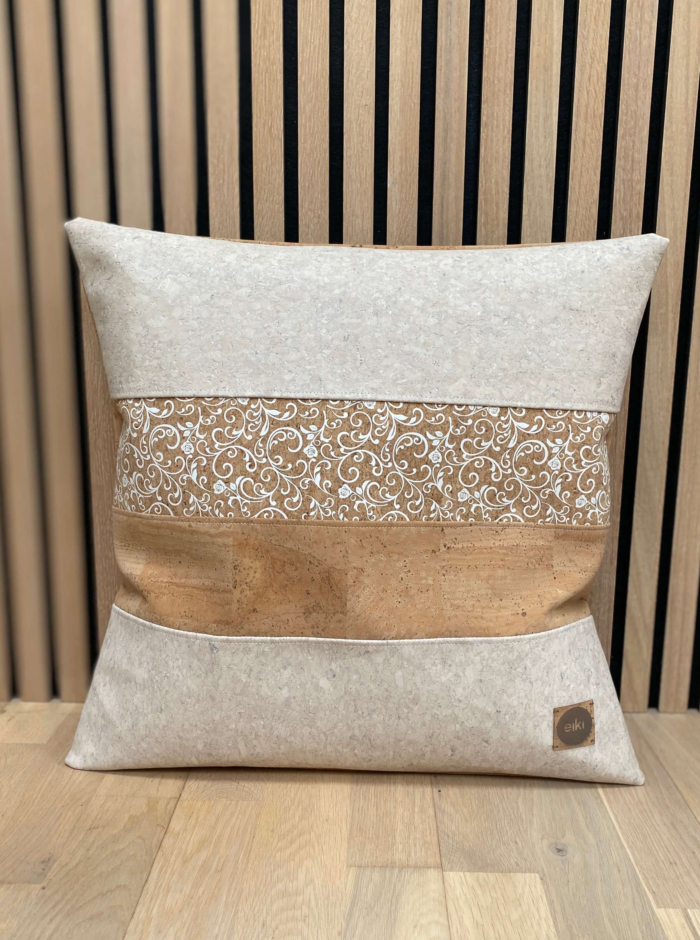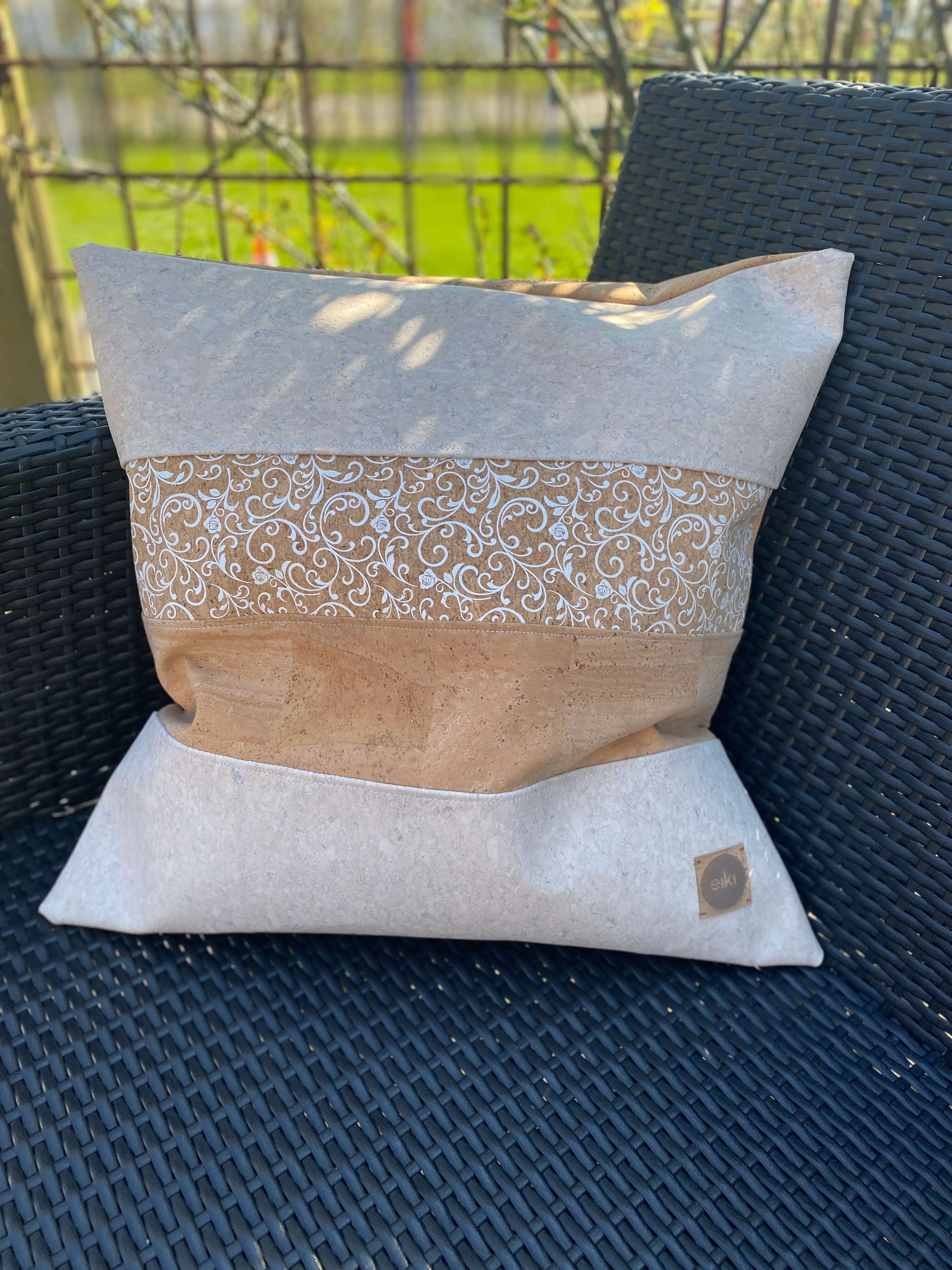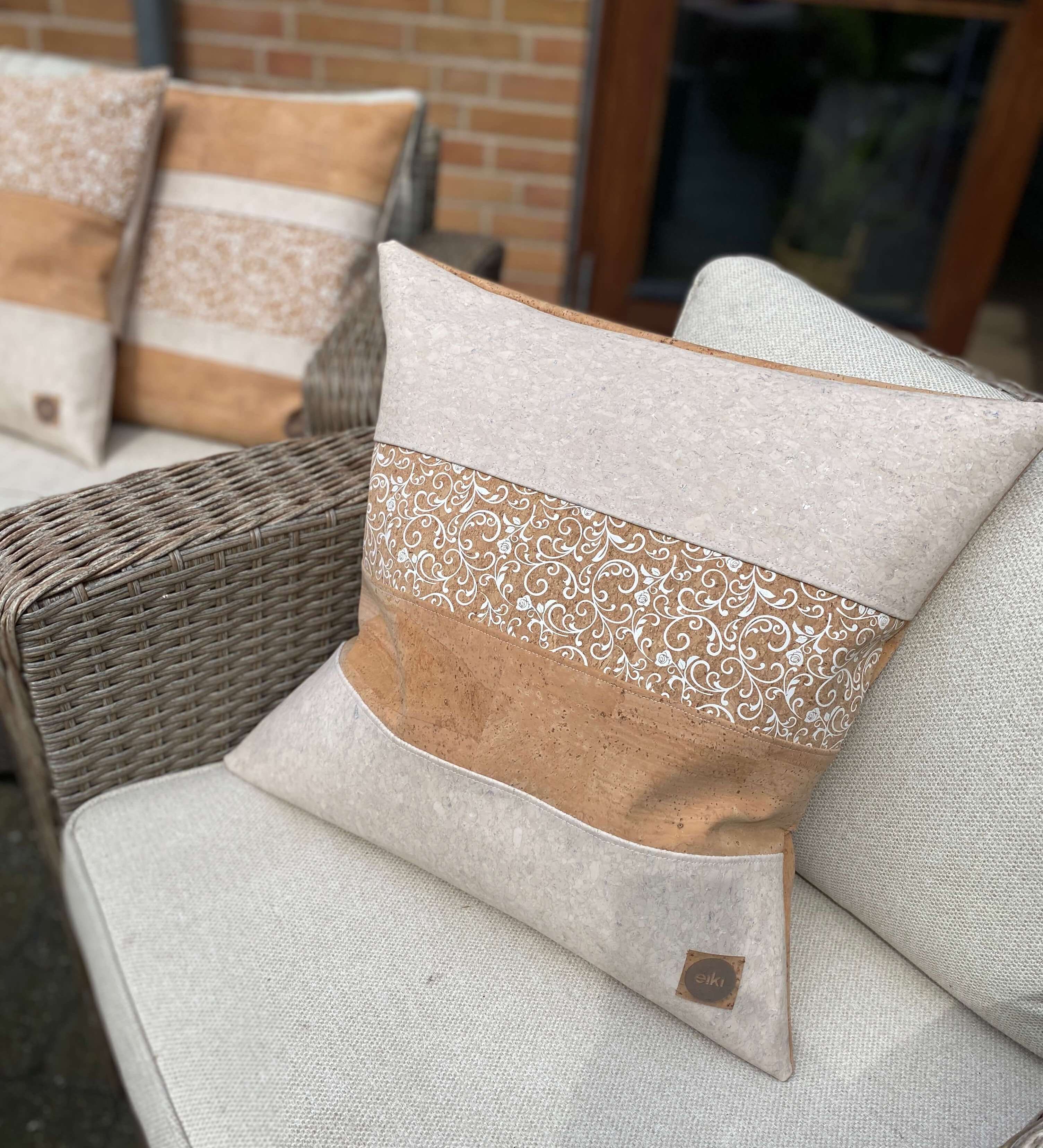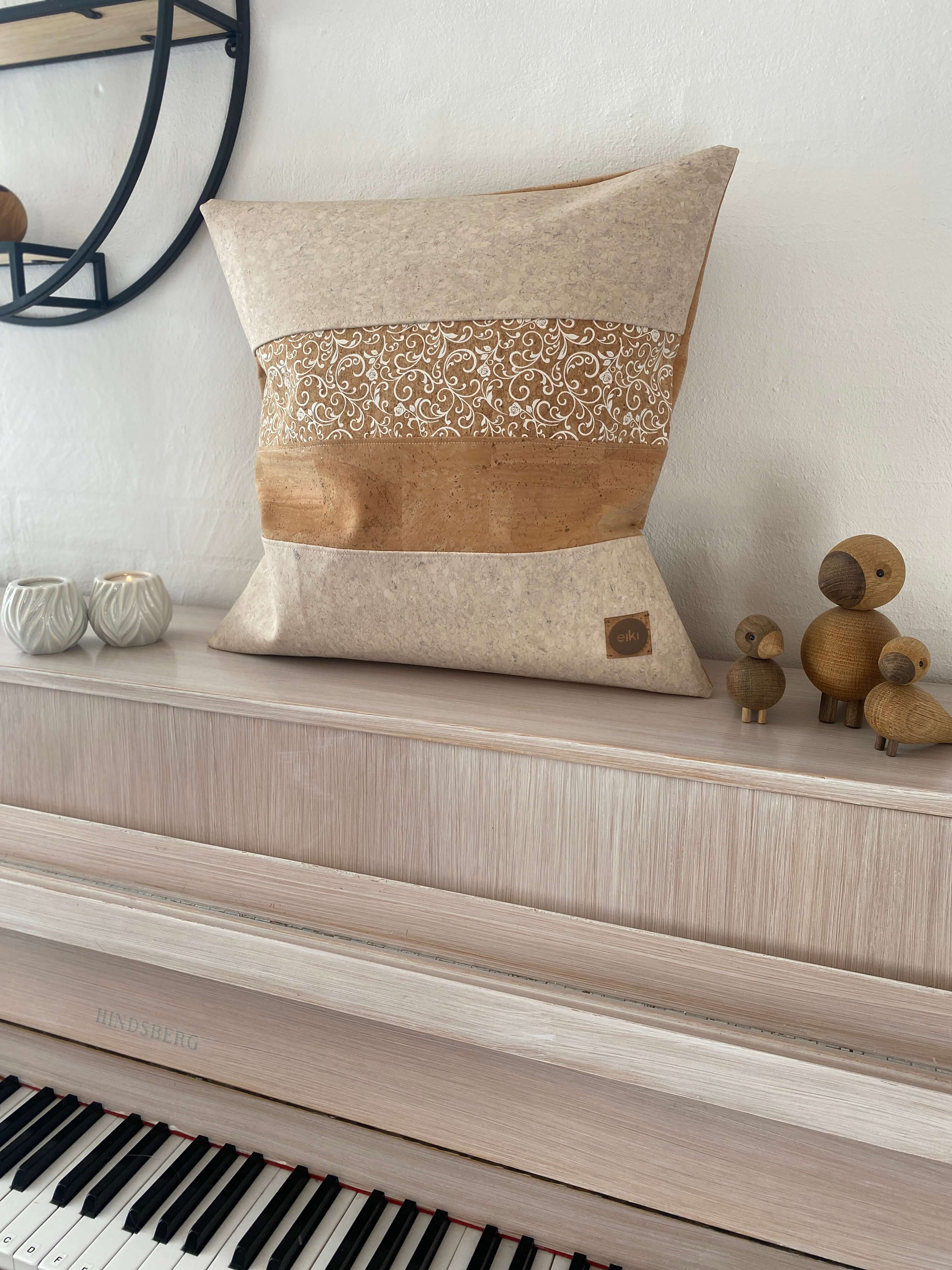 Denne fine pude i hvidt og naturfarvet korklæder bringer ro og balance ind i rummet. Den føles næsten som en stille hilsen – en lille påmindelse om at sænke skuldrene, trække vejret dybt og bare være. Den er smuk i sin enkelhed, og samtidig praktisk og slidstærk. Perfekt til både hverdag og hyggestunder.