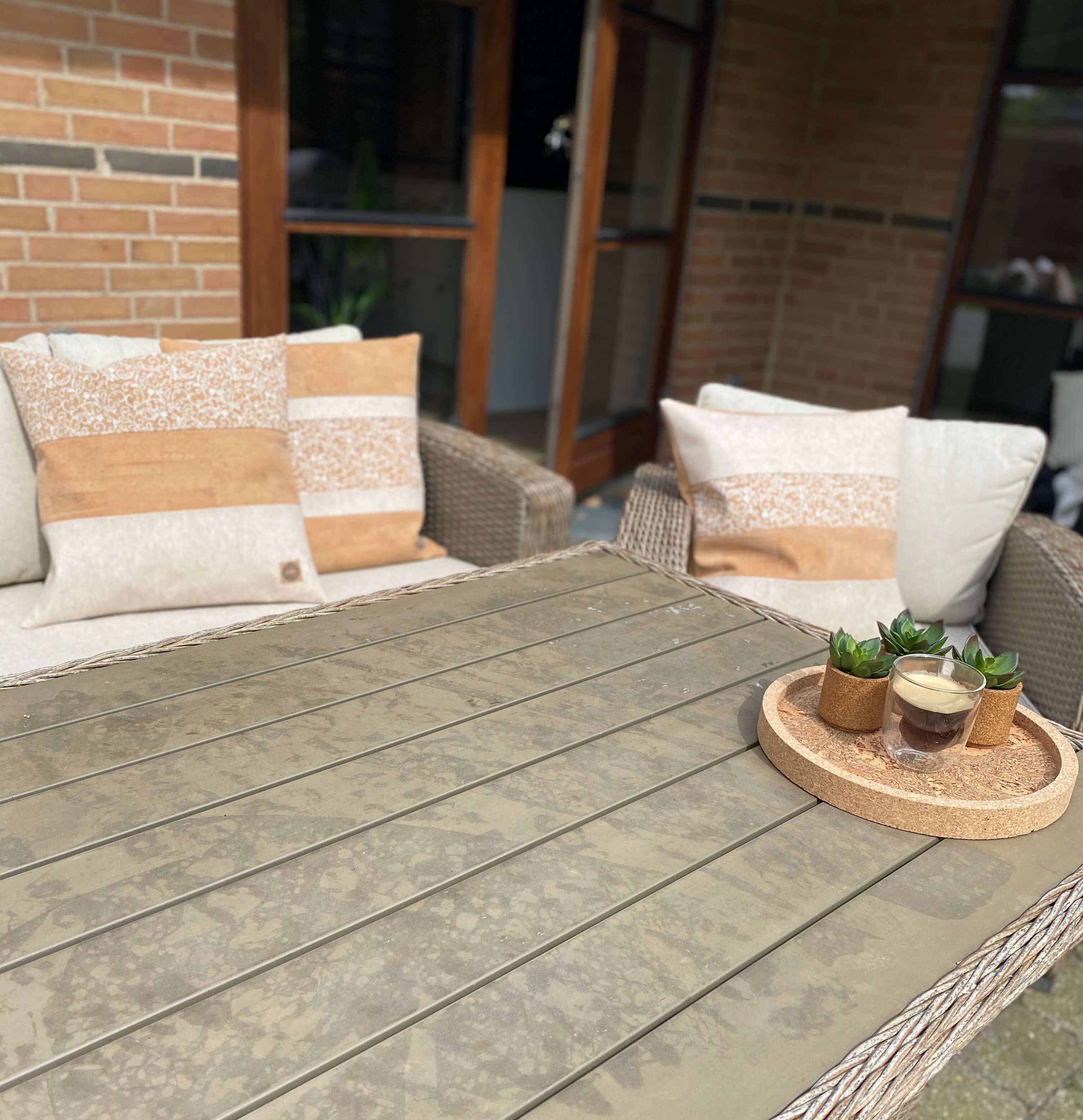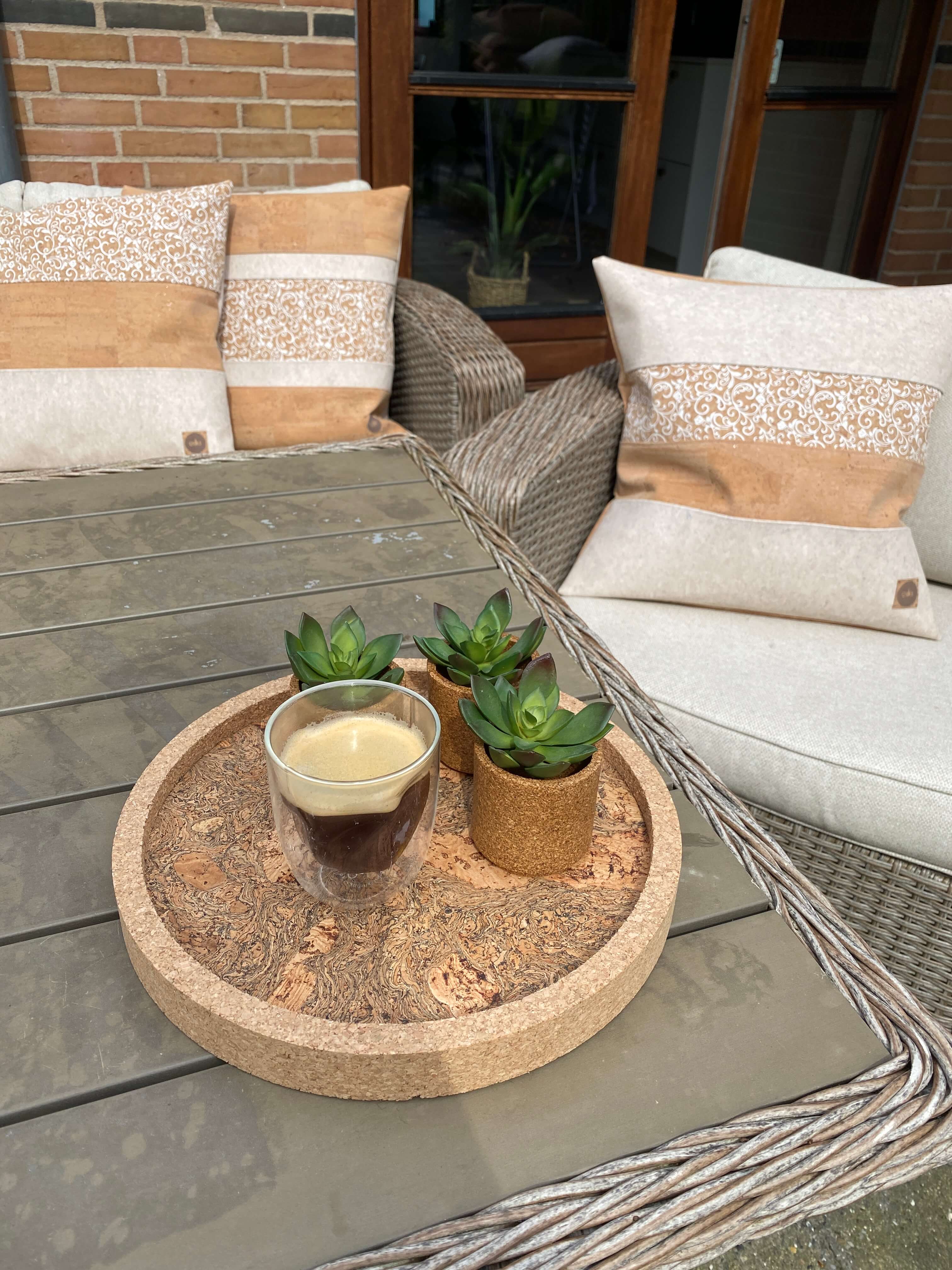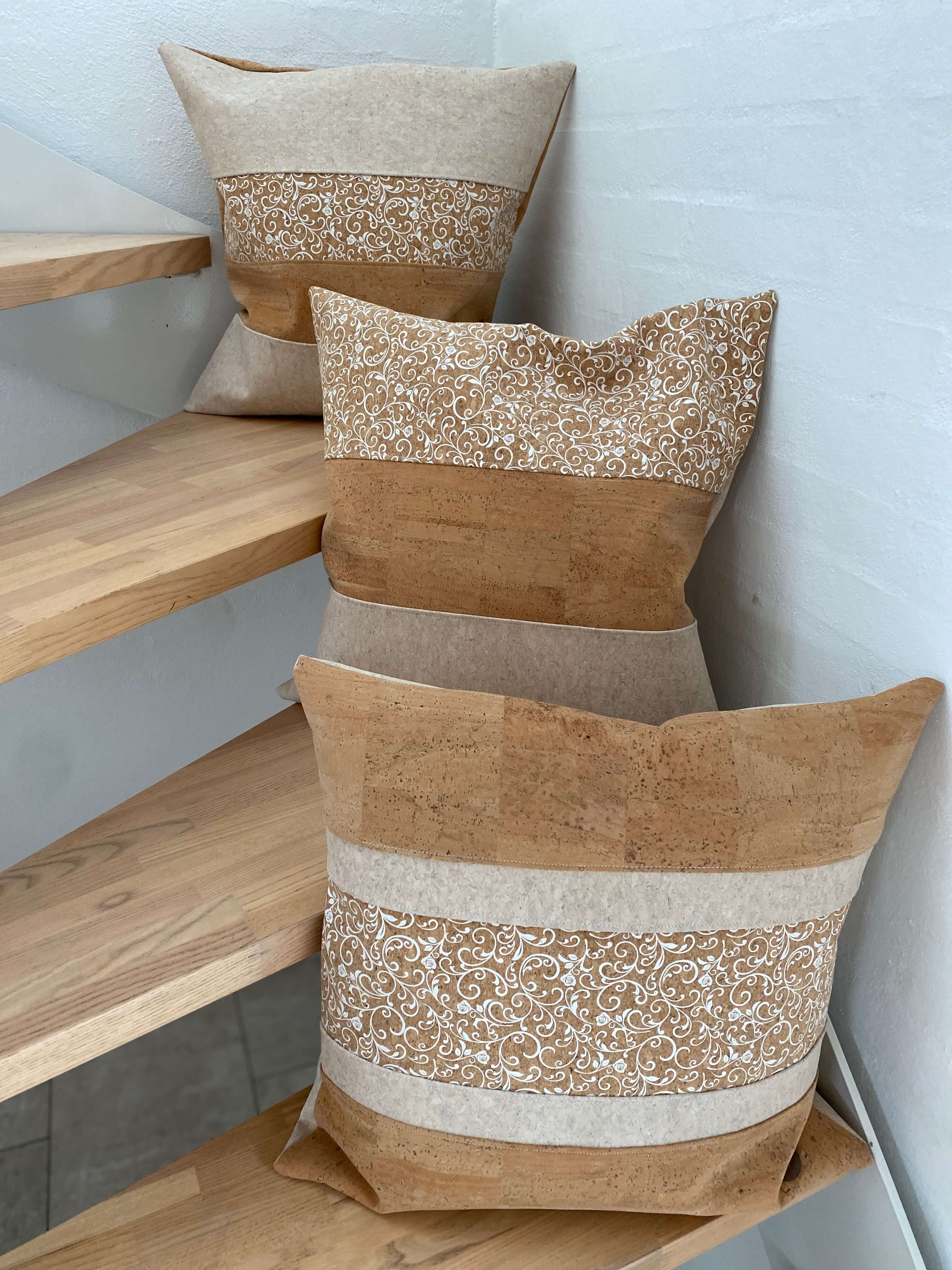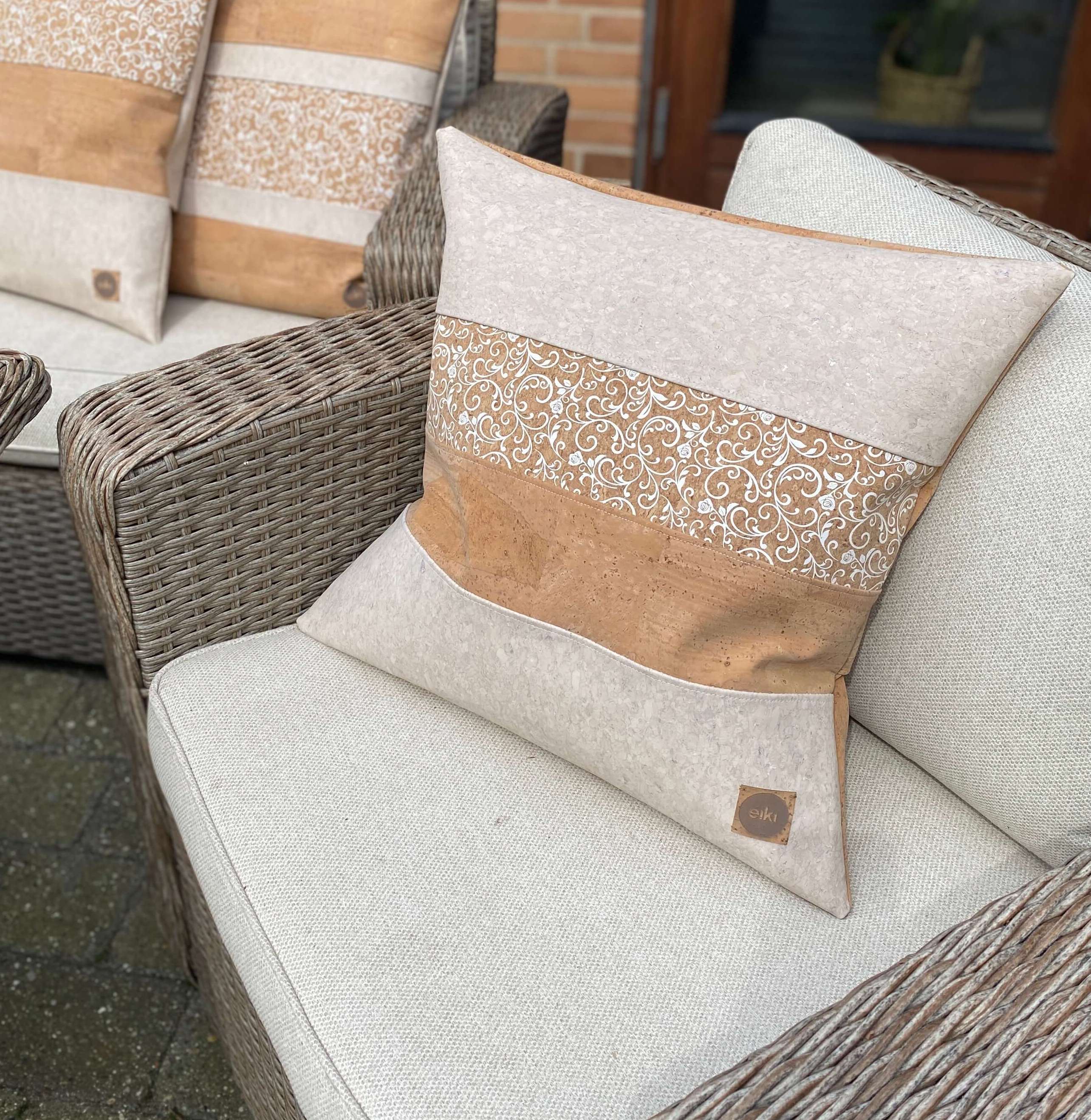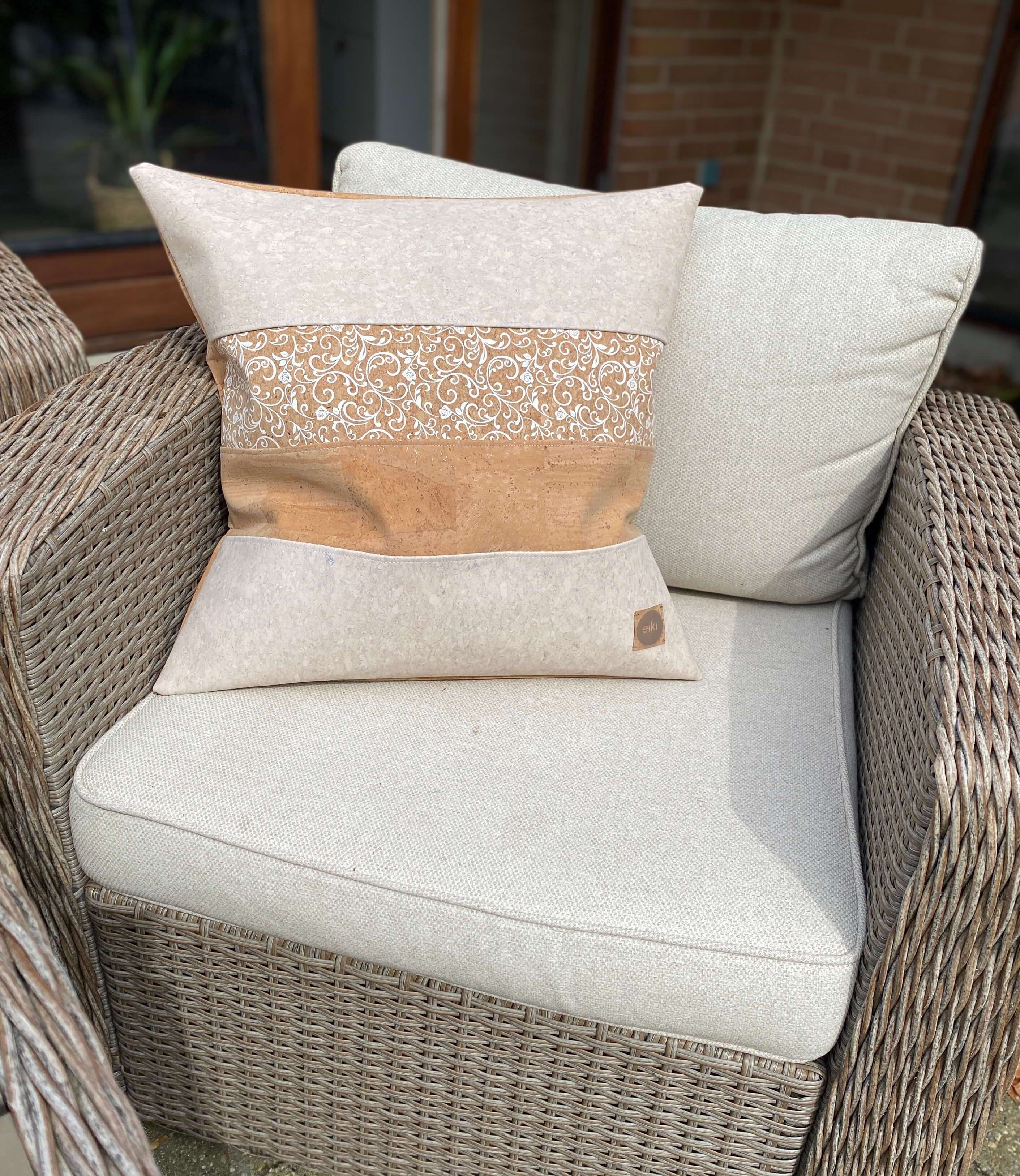 Denne fine pude i hvidt og naturfarvet korklæder bringer ro og balance ind i rummet. Den føles næsten som en stille hilsen – en lille påmindelse om at sænke skuldrene, trække vejret dybt og bare være. Den er smuk i sin enkelhed, og samtidig praktisk og slidstærk. Perfekt til både hverdag og hyggestunder.