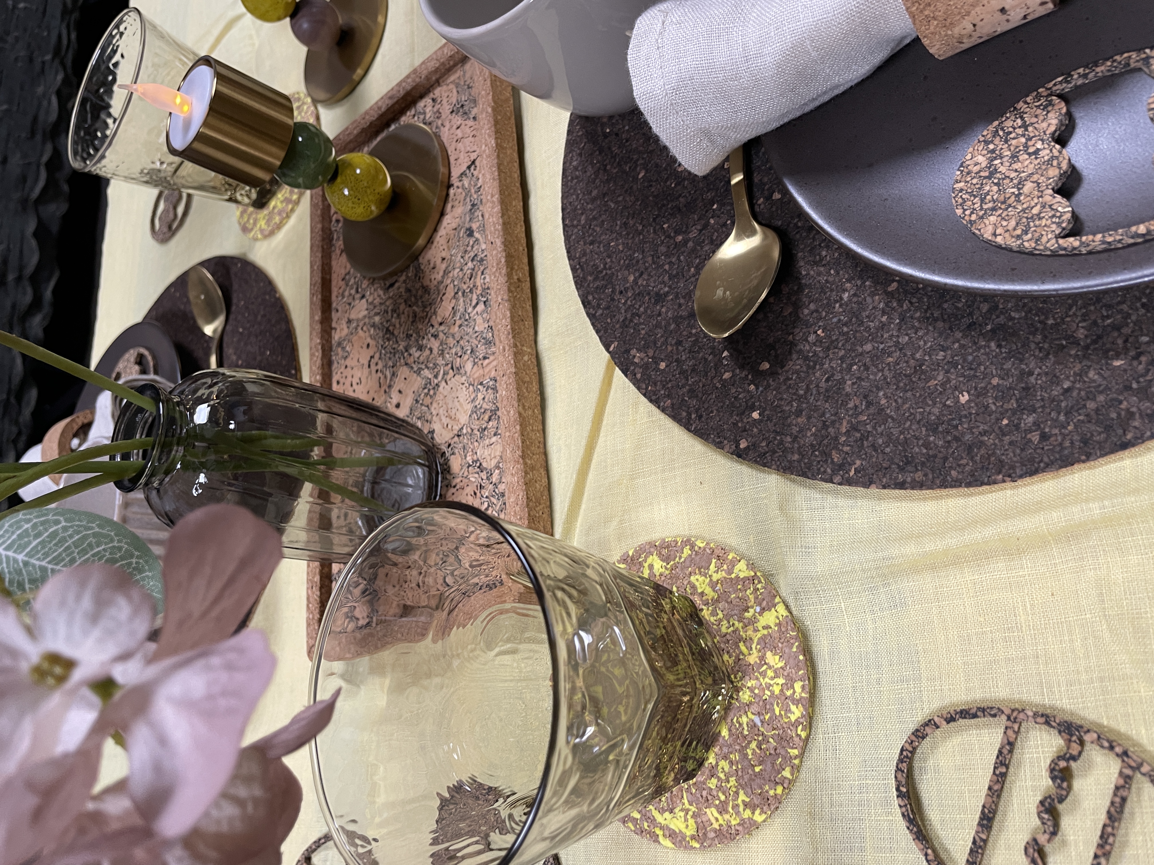 Tilføj et strejf af varme og glæde til dit bord med denne runde glasbrik i kork og genanvendt EVA i en smuk gul terrazzo-farve. En lille, men betydningsfuld detalje, der skaber hygge og beskytter dine overflader – perfekt til både hverdag og gæstebesøg.