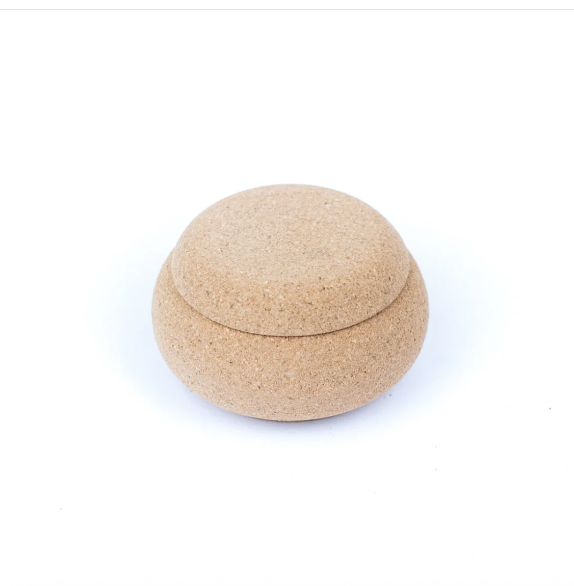 Korken er høstet i Portugal – nænsomt og med respekt for naturens egen rytme. Når korken høstes, binder træet faktisk mere CO₂, end det frigiver. Det gør kork til et valg med omtanke – både for dem, der bruger det, og for kloden, vi deler. Overfladen føles lun og blød, og den naturlige struktur gør hvert skrin helt unikt.