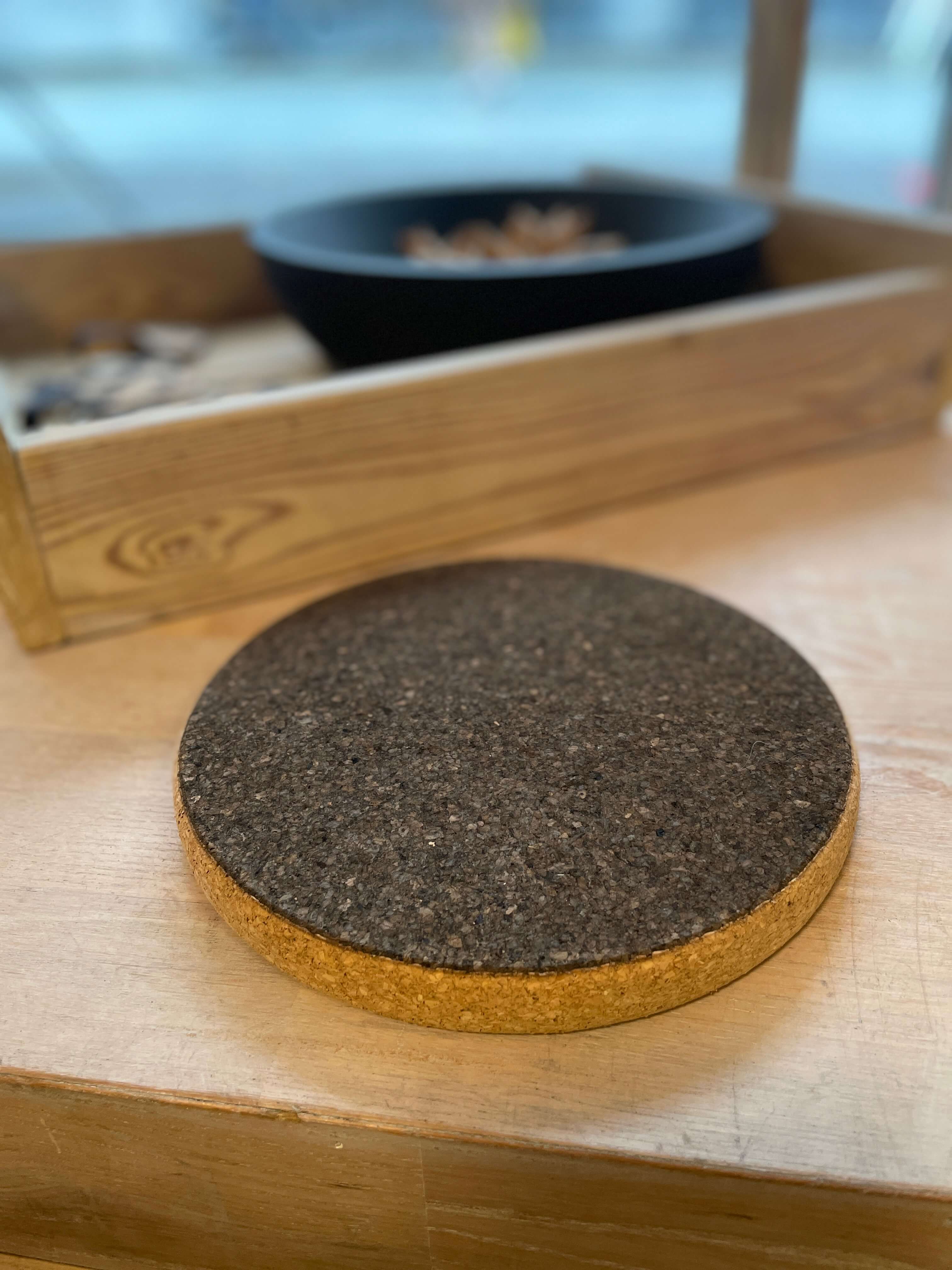 Med den smukkeste mørkebrune overflade, naturkork i siderne og en robust tykkelse på 2 cm, får du en bordskåner, der både beskytter og pynter.
