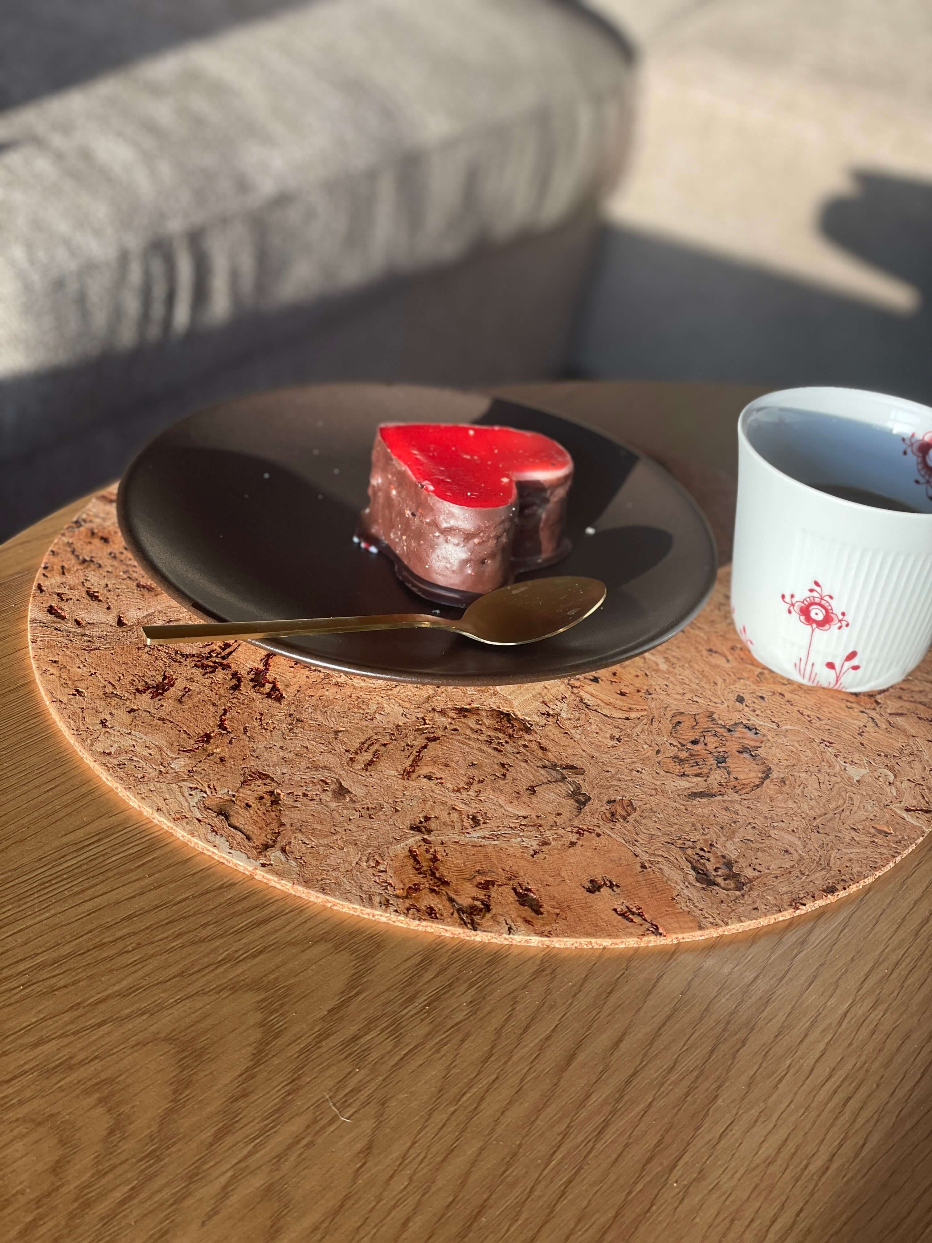 Korkens naturlige egenskaber gør dækkeservietterne både vandafvisende, antibakterielle og slidstærke. De holder sig flotte, selv når de bliver brugt hver dag – og det er netop meningen. De er lavet til at blive en del af dine ritualer og din hverdag.