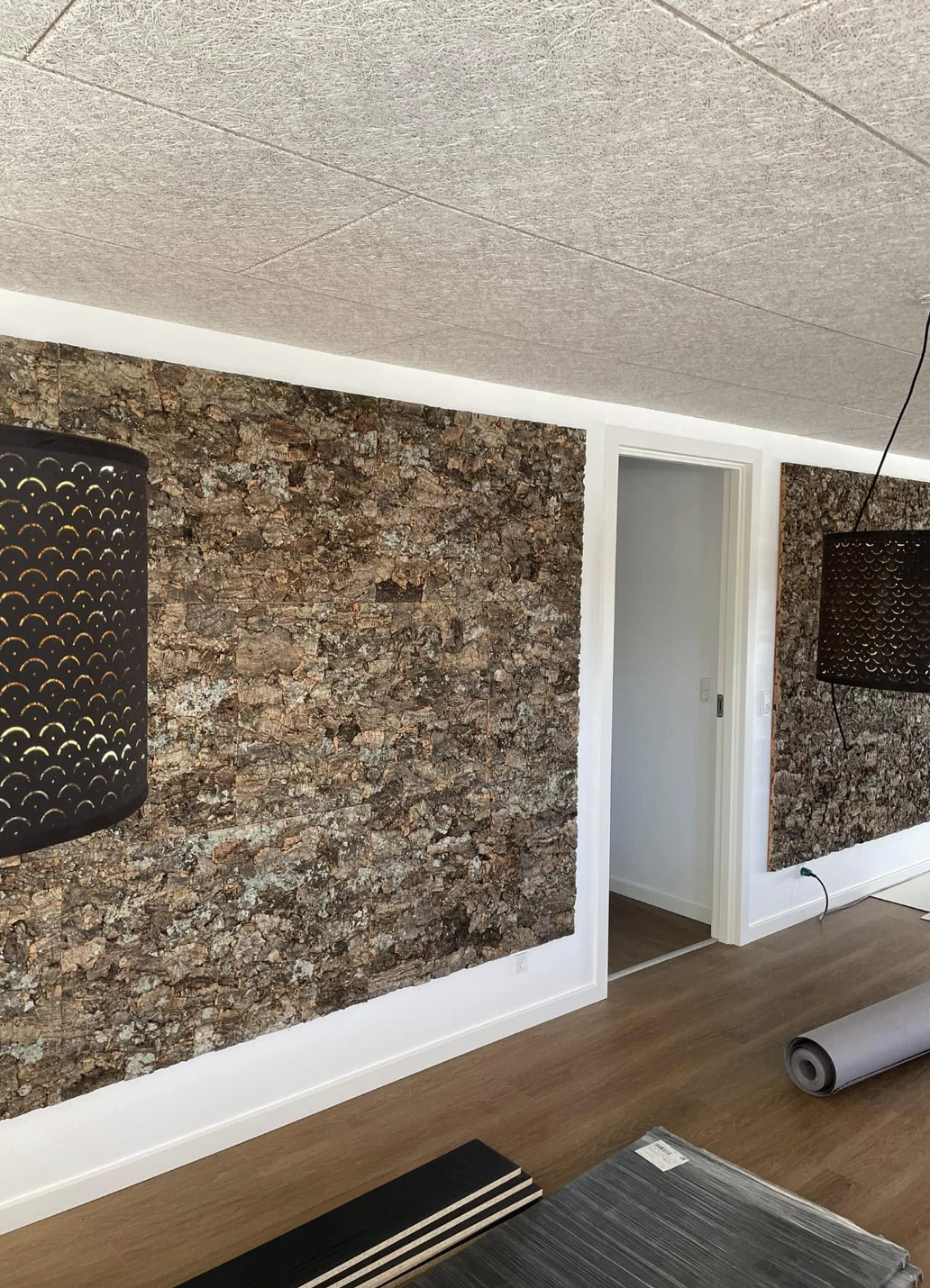Korkpladerne har en naturlig lyddæmpende effekt, fordi korken består af millioner af små luftfyldte celler. De absorberer og dæmper lyd, så du får et mere behageligt rum – især på hårde vægge eller i rum med mange glatte overflader.