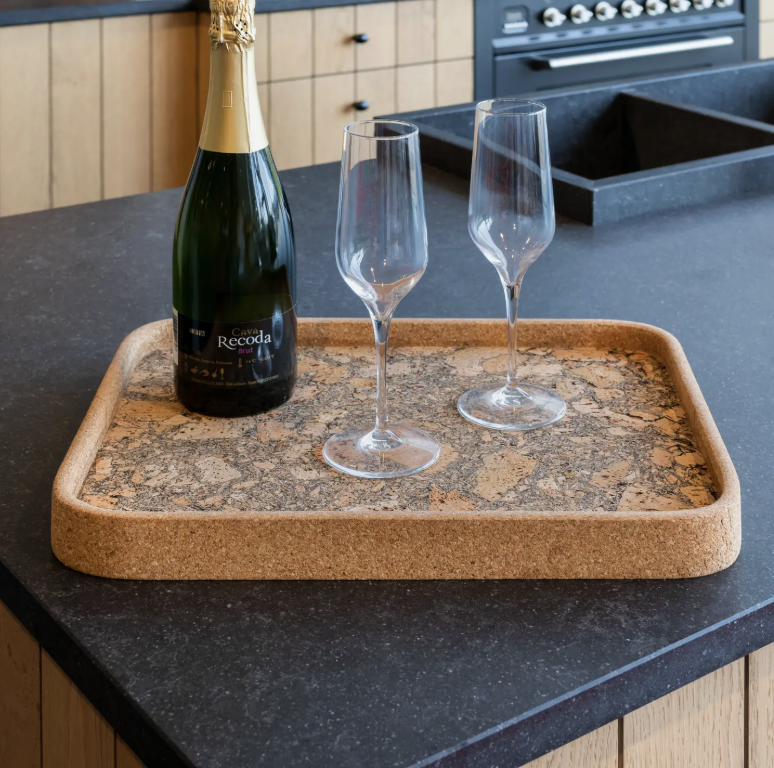Serveringsbakkerne er fremstillet i 100 % FSC-certificeret kork og har et roligt, tidløst design, der passer ind i både moderne og klassiske hjem.