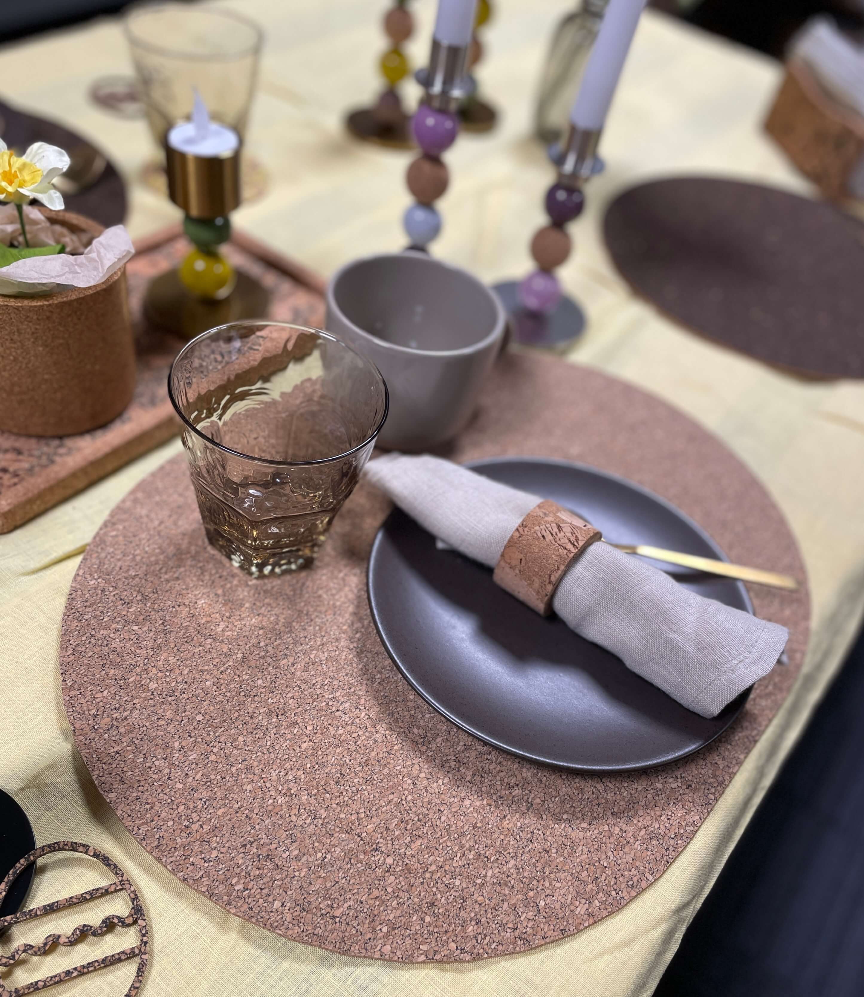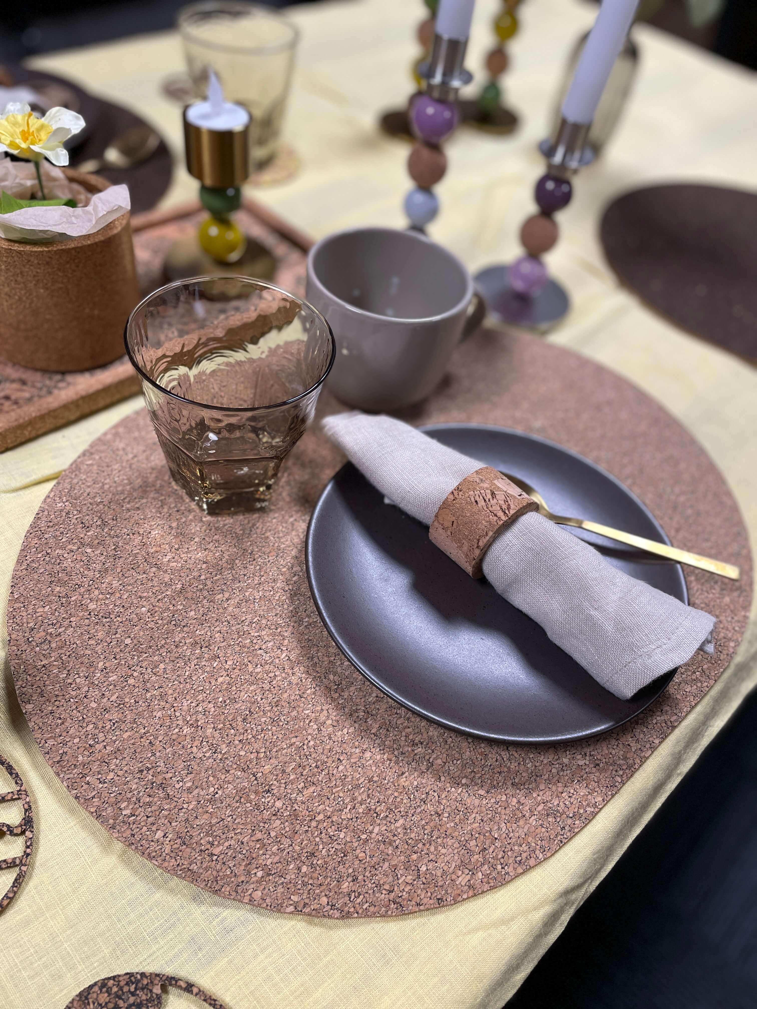 Der er noget særligt over at dække et bord med omtanke – og denne smukke dækkeserviet i naturkork bringer netop den stemning. Den neutrale farve passer til alt, uanset om du dækker op til hverdag, gæster eller en stille stund for dig selv.