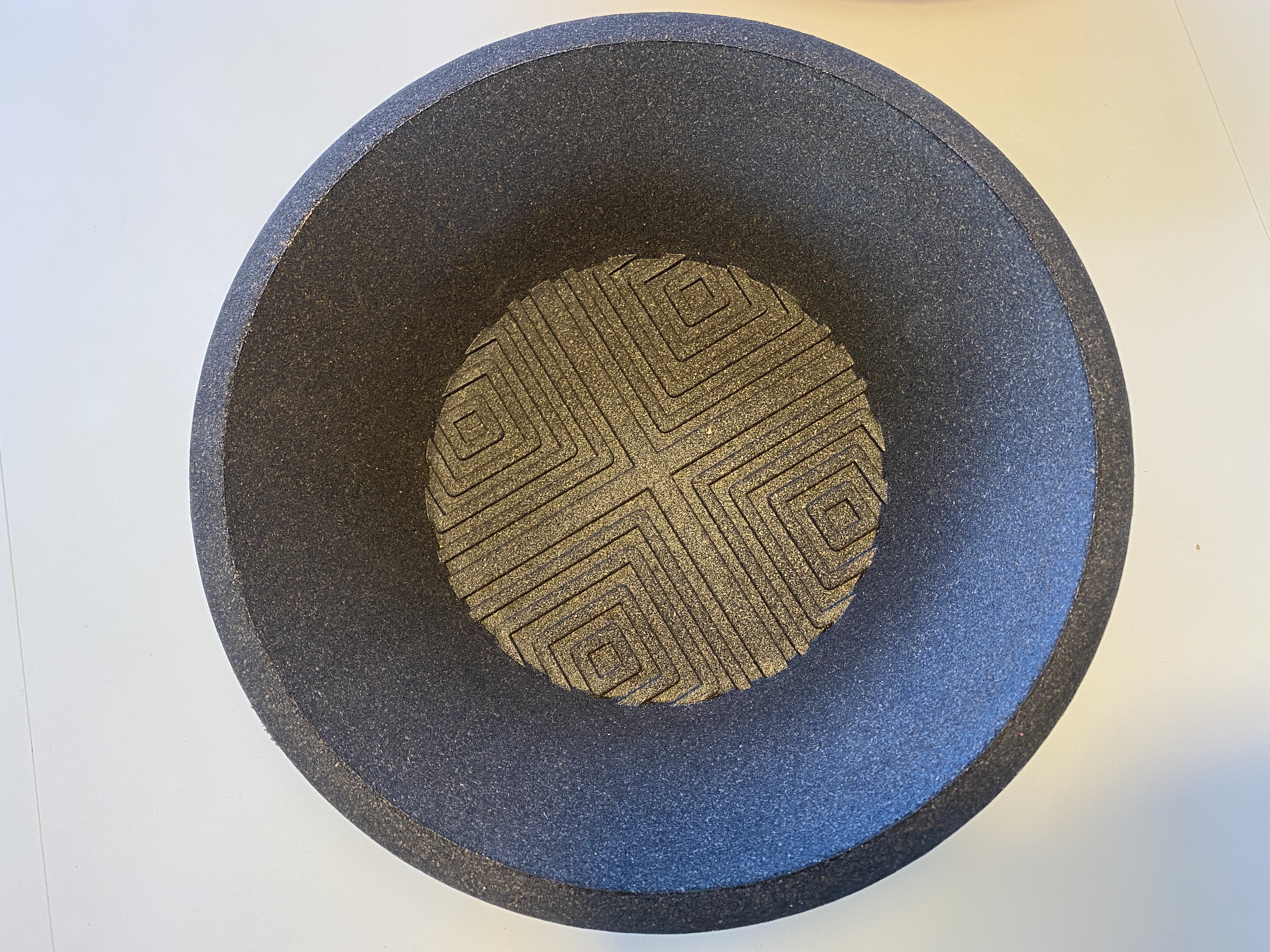 Denne smukke og store skål er den perfekte kombination af funktionalitet og skønhed. Brug den som serveringsskål til lækre retter ved bordet eller som en dekorativ skål til at tilføje et naturligt touch til dit hjem. Skålens fine mønster i bunden er en detalje, der virkelig fanger blikket og tilføjer et ekstra pift til dens design.