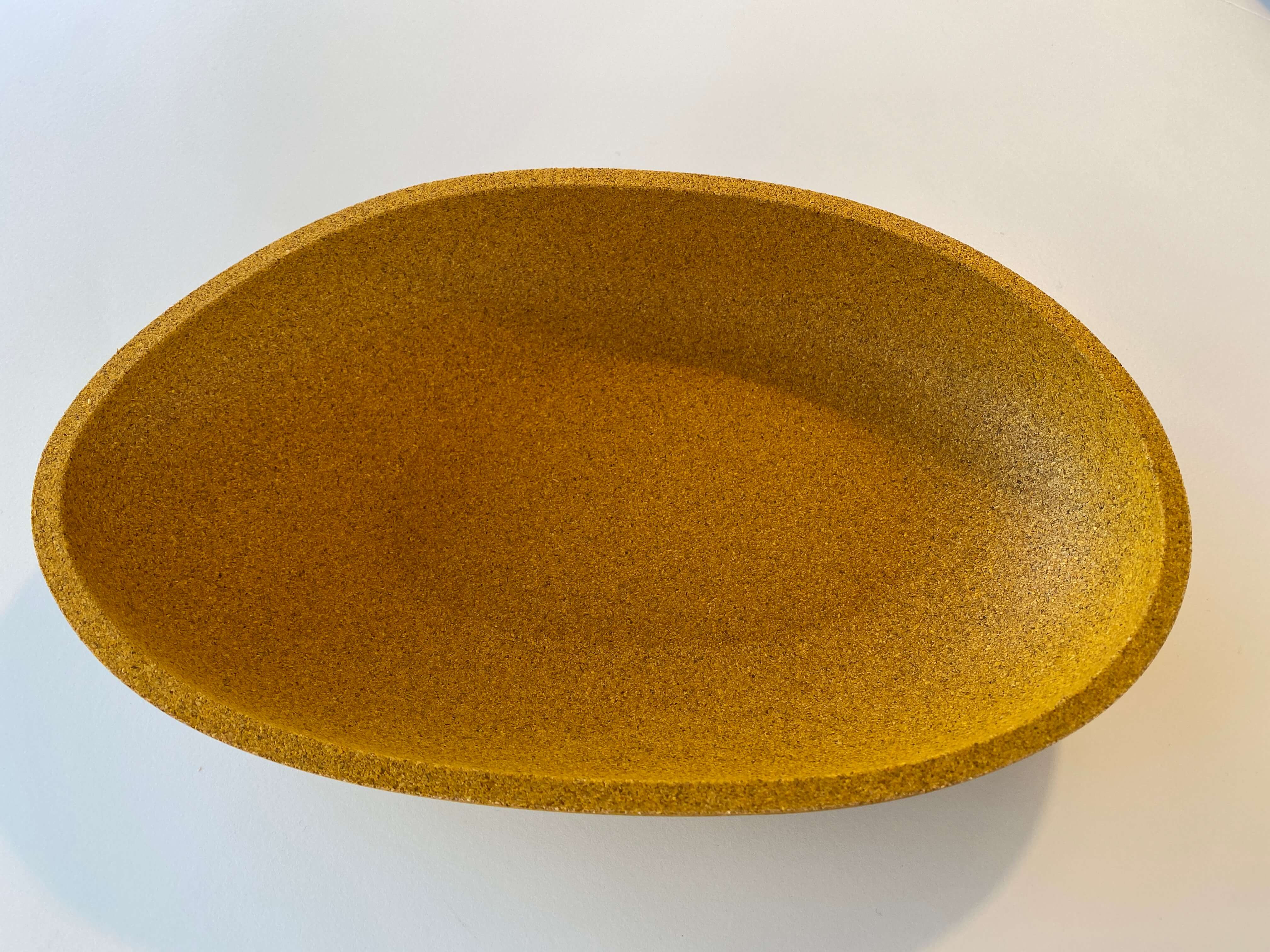 Denne gule korkskål er noget helt særligt. Den varme, solrige farve bringer liv og glæde til dit hjem og skaber en indbydende atmosfære, der emmer af hygge. Den asymmetriske form giver skålen et helt særligt udtryk, som både er dekorativ og funktionel. Brug den som serveringsskål, til opbevaring af småting eller som et smukt pynteobjekt – kun fantasien sætter grænser.