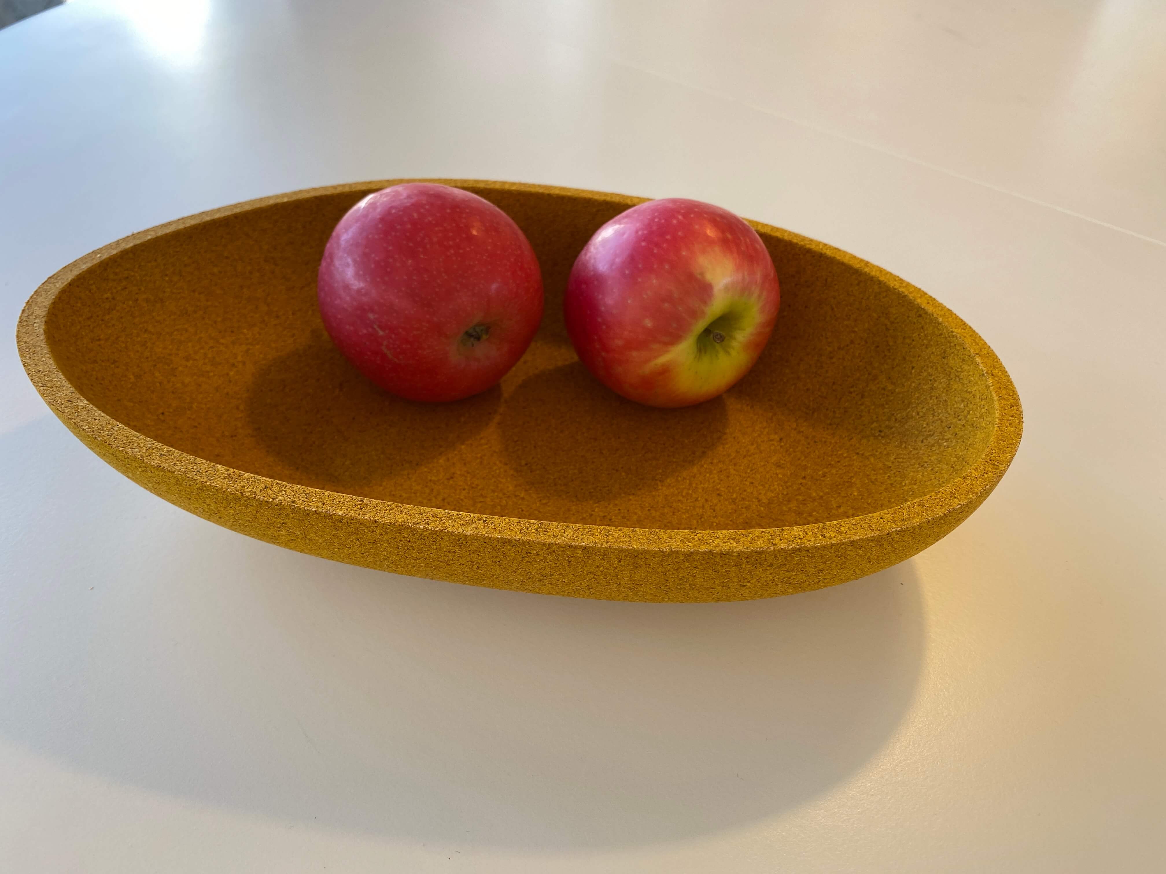 Skålen er lavet af kork, som høstes nænsomt fra korkegen. Denne proces er ikke kun skånsom mod naturen, men hjælper også med at optage CO2. Ved at vælge kork får du ikke bare en smuk skål, men du er også med til at støtte en miljøvenlig proces, der gør en forskel for naturen.