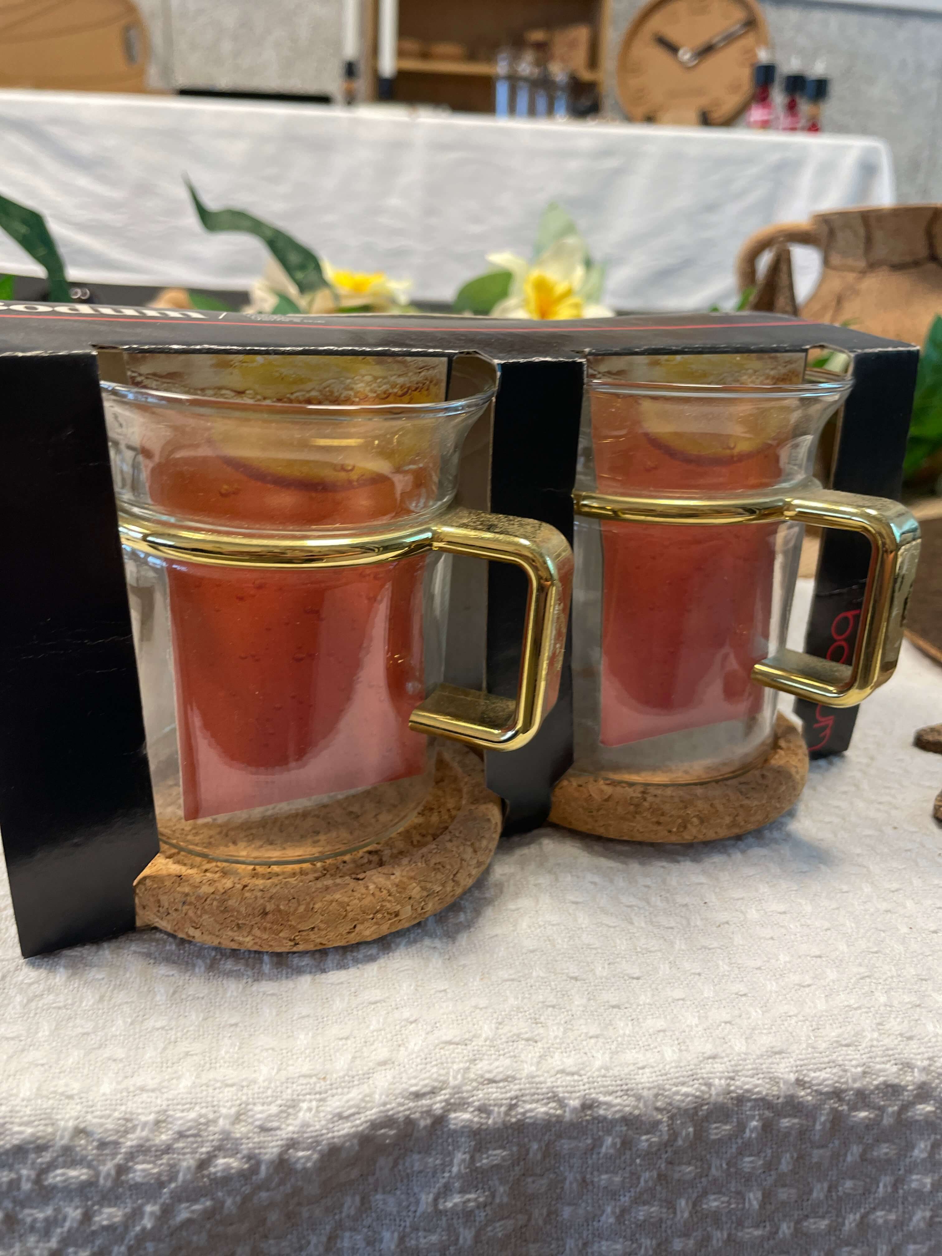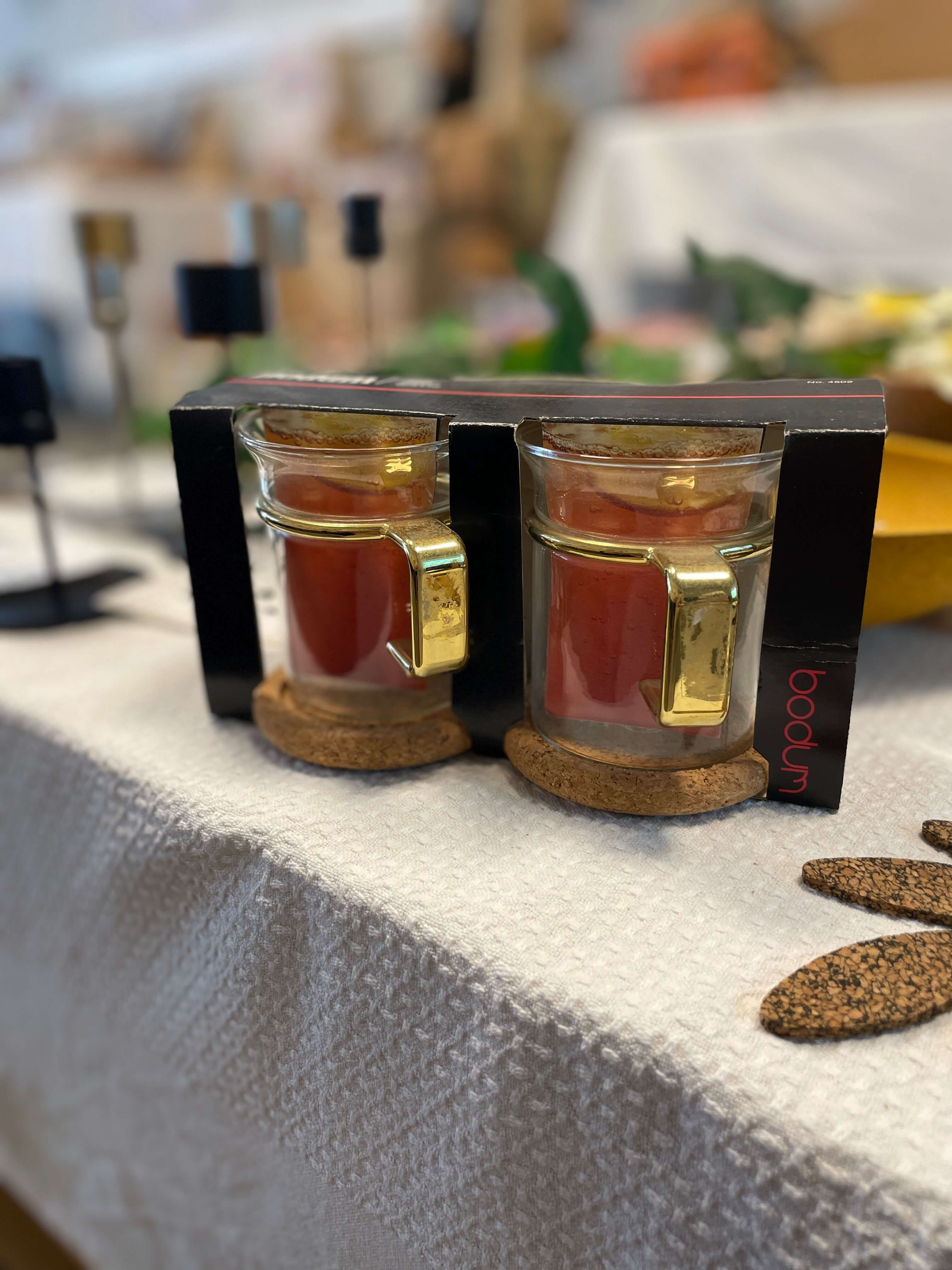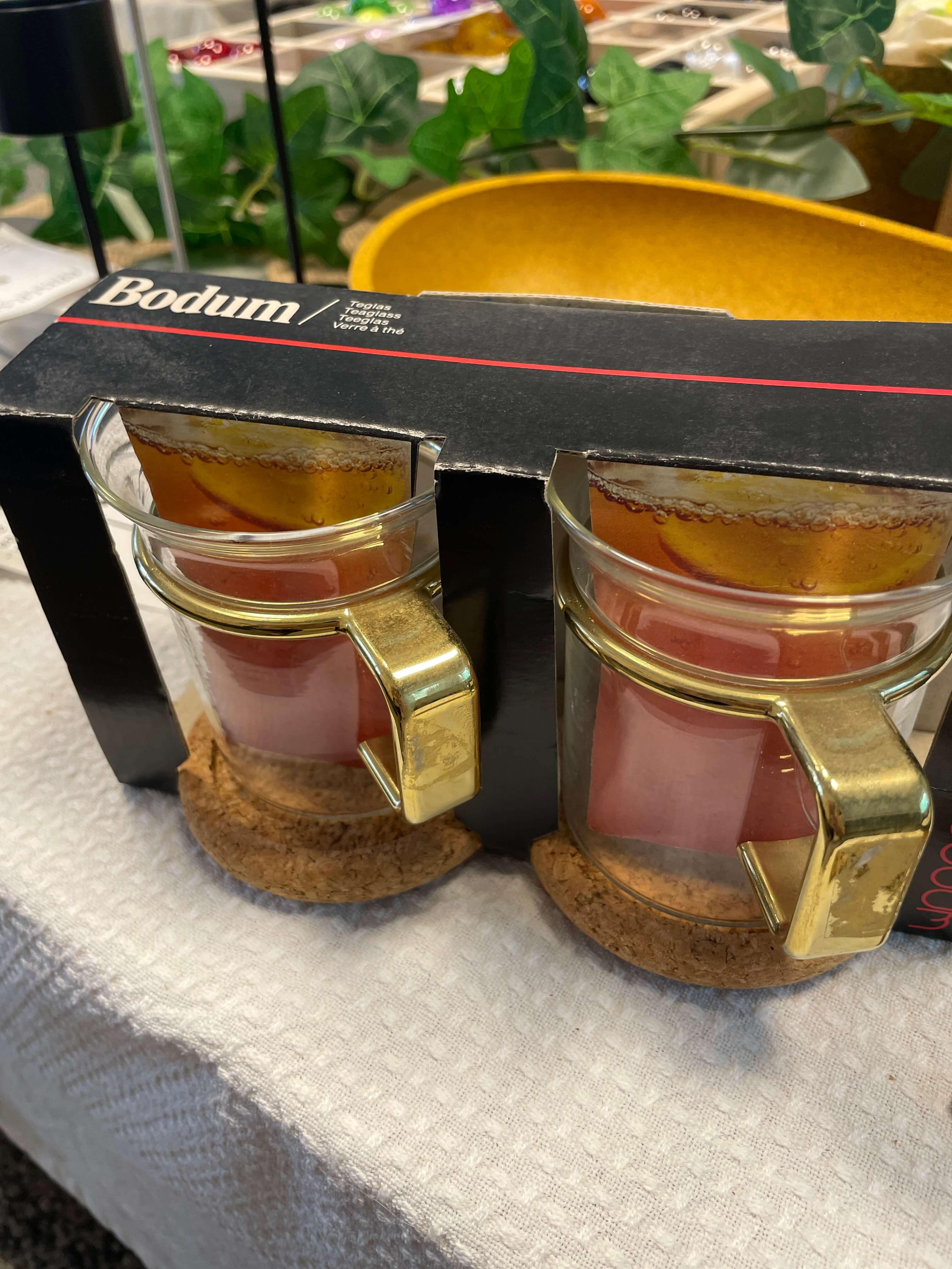 Retro Bodum glas med “guld”-håndtag – helt særlige