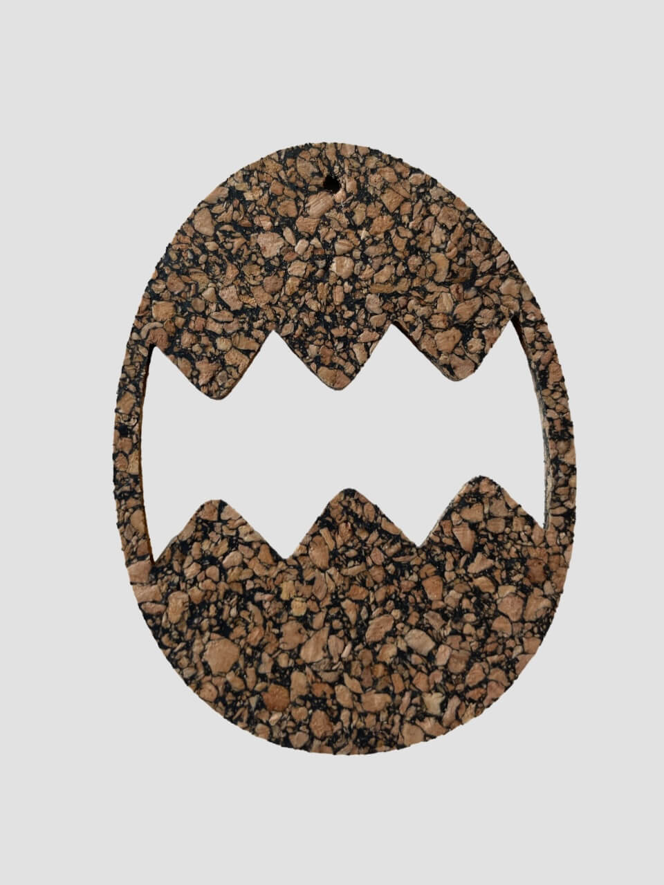 Skab en stemningsfuld og hyggelig påske med dette elegante påskeæg, designet og produceret af danske TheLeftOver. Ægget er lavet med omtanke for både stil og materialevalg – fremstillet af restkork blandet med brugte bildæk, hvilket giver det et stilfuldt og naturligt udtryk.